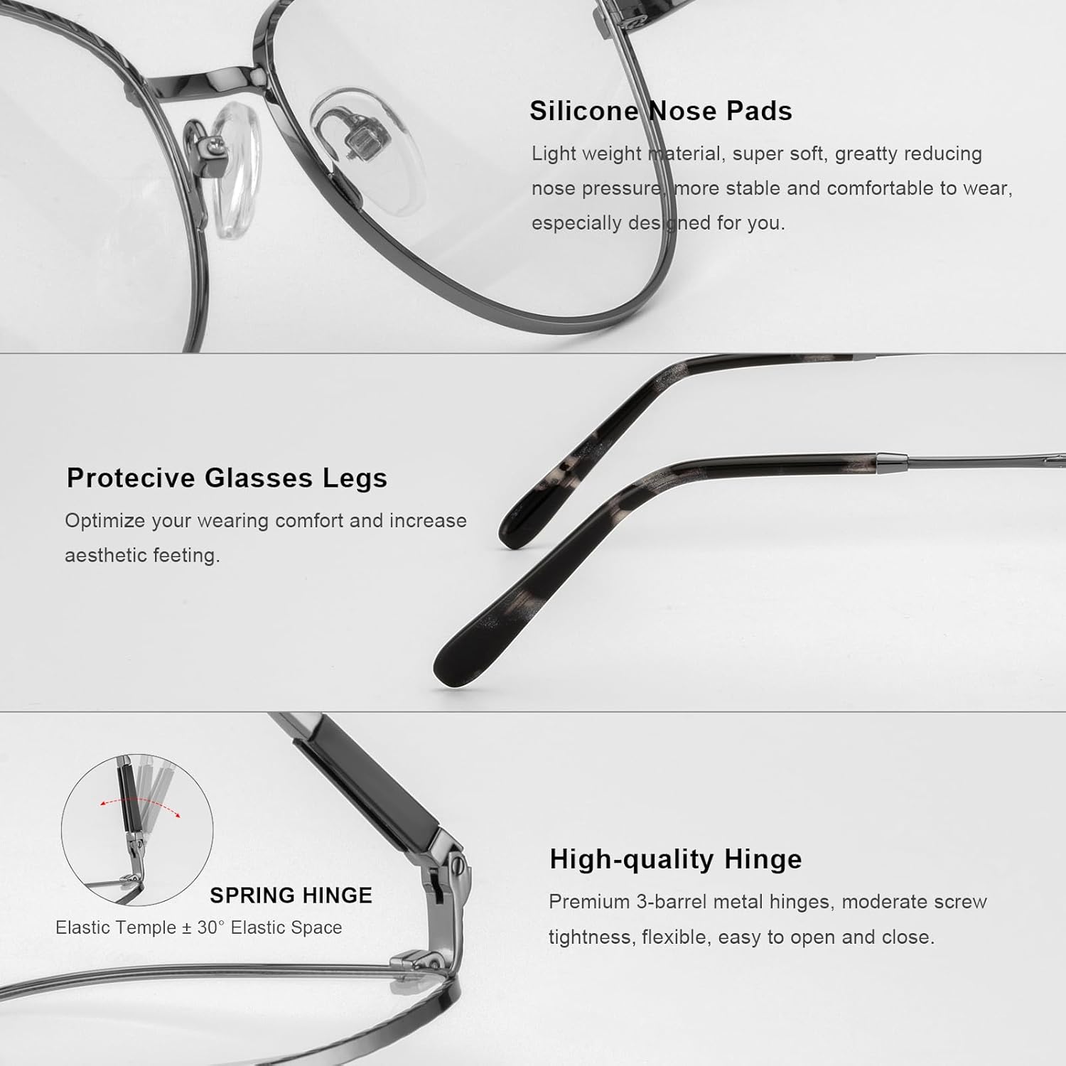 - 【ANTI BLUE LIGHT GLASSES】- Blue light blocker&UV400 Lenses, Alleviates visual fatigue and discomfort from browsing mobile phones, tablets, gaming and working under fluorescent lights with UVA/UVB protection and glare reduction.