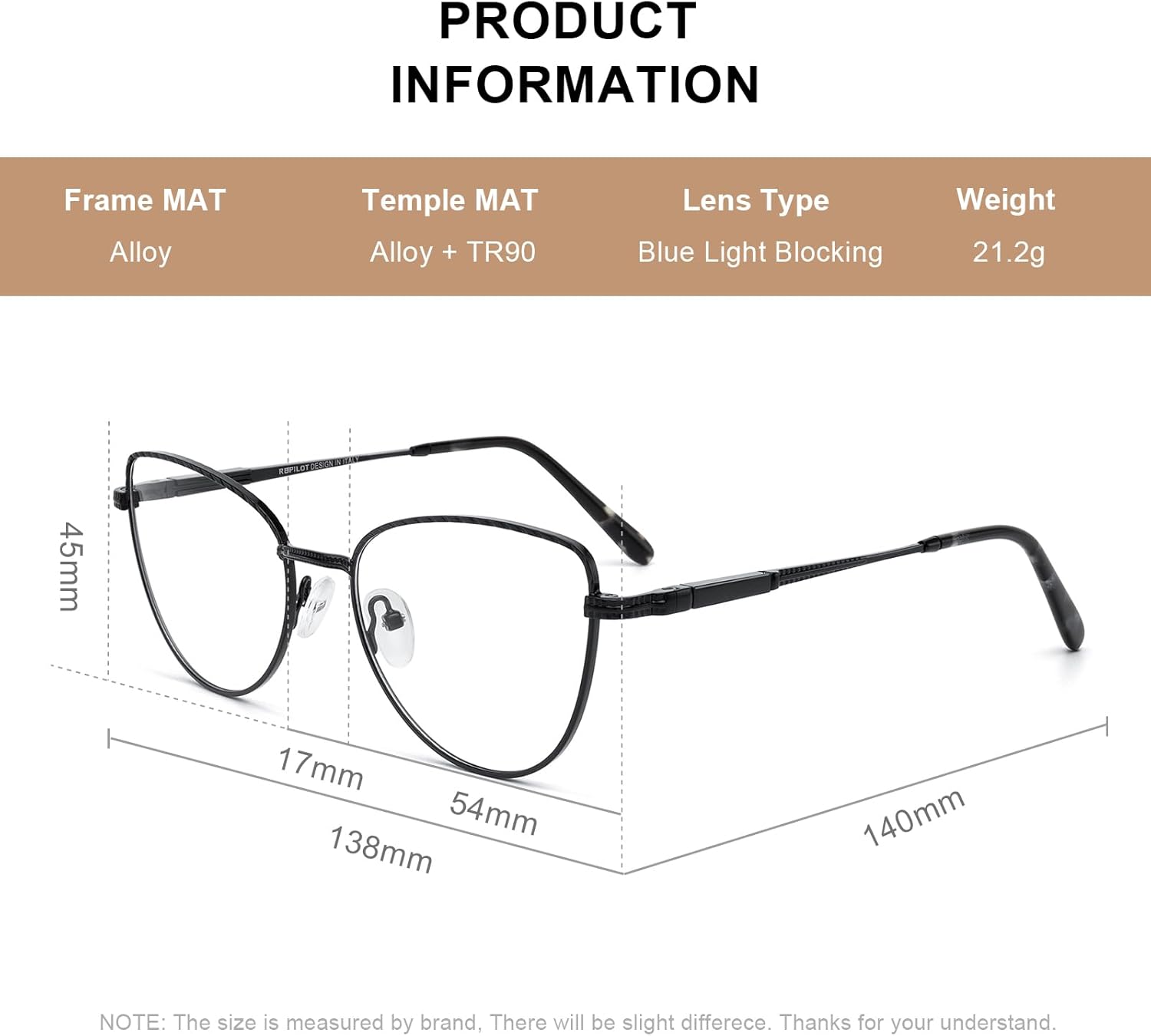 RB. Pilot Retro Cateye Reading Glasses for Women Blue Light Blocking Computer Glasses Spring Hinge Readers