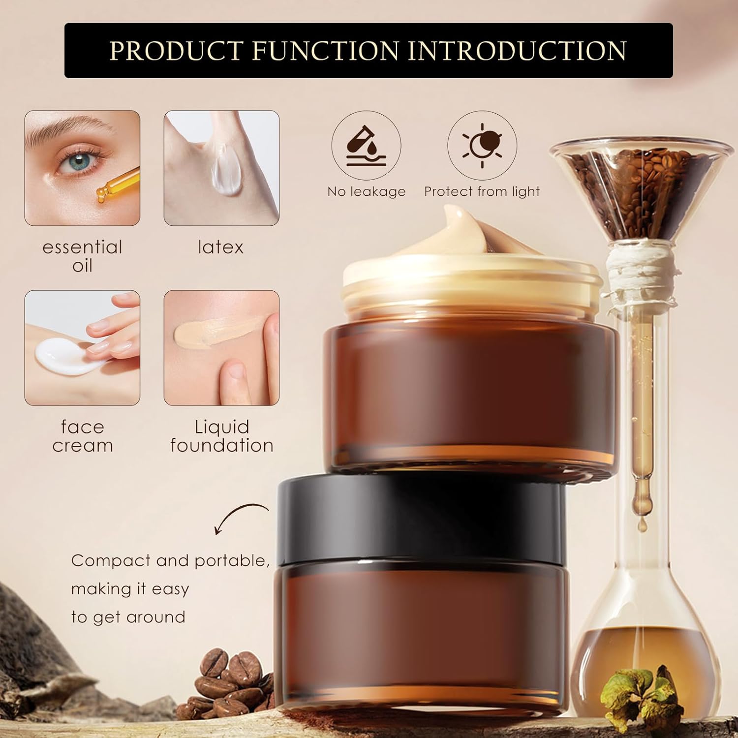 - Leak Proof: Every Jar comes with a matching inner liner and dome lid which provides for a tight and secure seal. Flat lids and straight sides make these easy to use and stack. The brown colored bottle can protect your cosmetics from direct sunlight