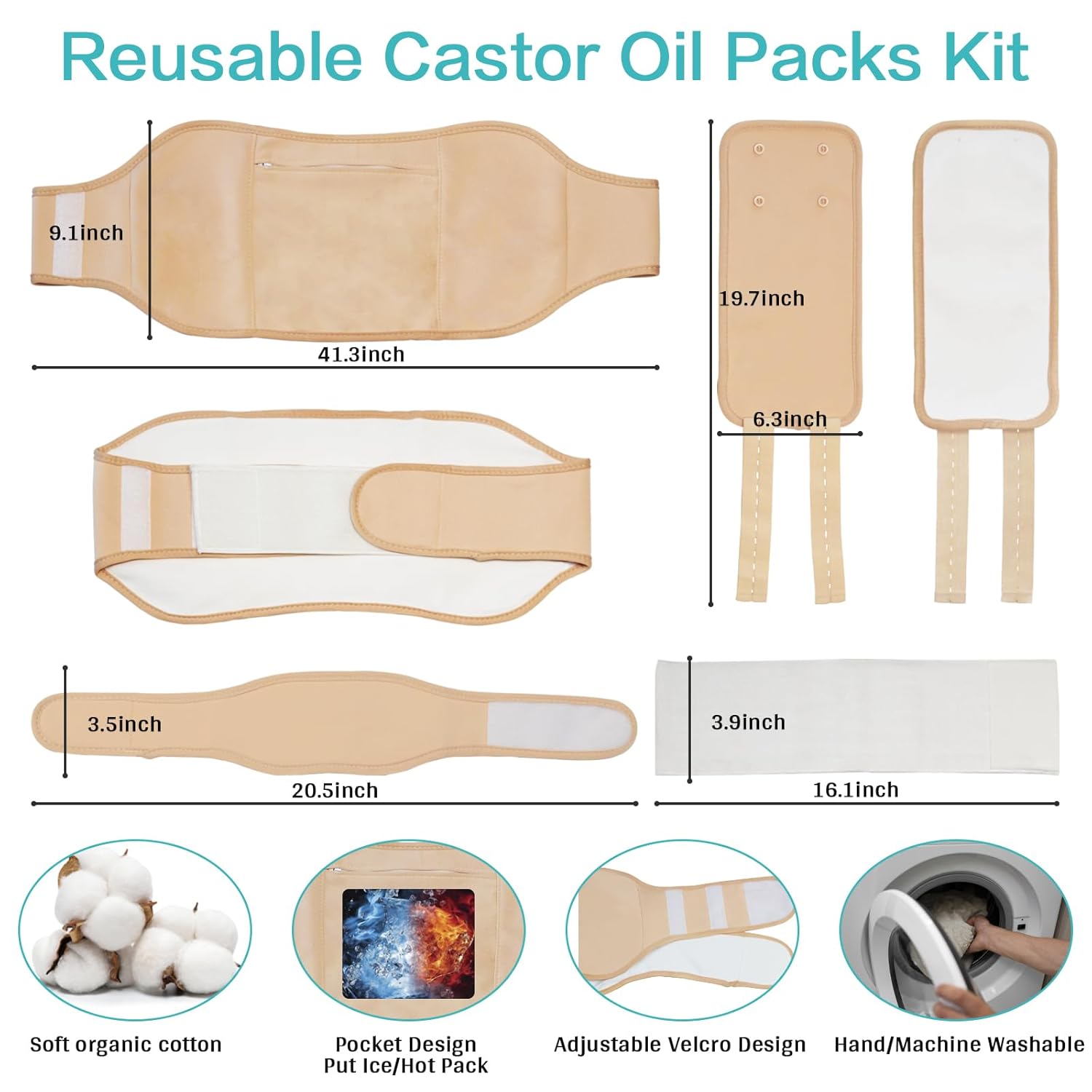 - Adjustable Elastic Design: The organic castor oil packs is adjustable velcro design and come with a extension belt, so you don't need to worry about this size, this organic castor oil wrap fit for most different body size. And the waist castor oil pack has zipper pouch design, you can put in a heat pack, better absorption of castor oil nutrients.