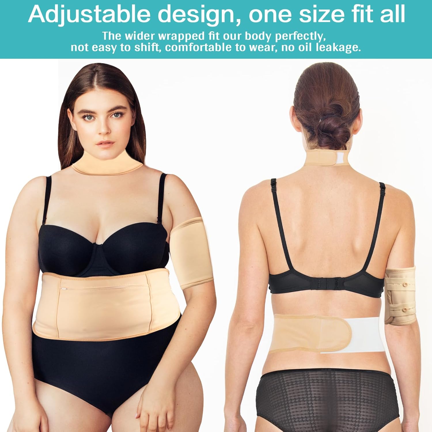 - Castor Oil Wrap Kit: The package have 5 pcs sets and include 2 pcs knee castor oil packs, 1 pcs waist castor oil packs, 1 pcs neck castor oil wrap, and 1 pcs extension belt. One castor oil packs kit can cater to different body parts, you can use them on the arms, knee, legs, stomach, belly, waist, relaxing the entire body (Castor Oil Not Include).