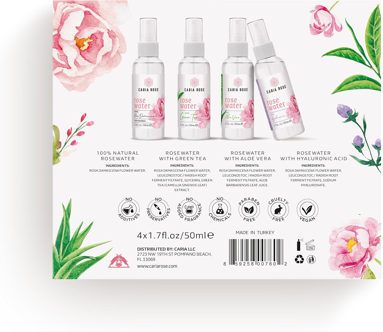 - Discovery Set of 4 travel size (1.7oz) Rosewater Spray including: