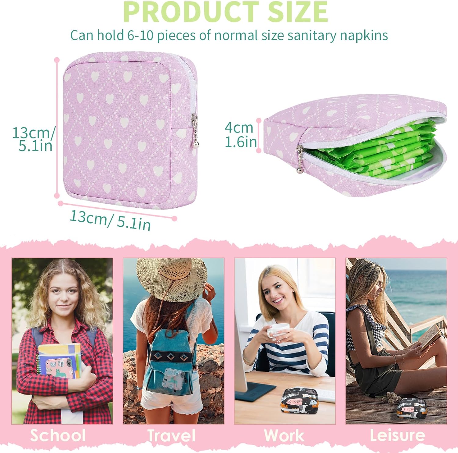 - 💕 【Premium Materials】- Our pads storage bag is made of soft and skin-friendly material. It is small and cute, durable and dirt-resistant. Perfect travel size to put in back packs or purse. Will be a nice gift for your family and friends.