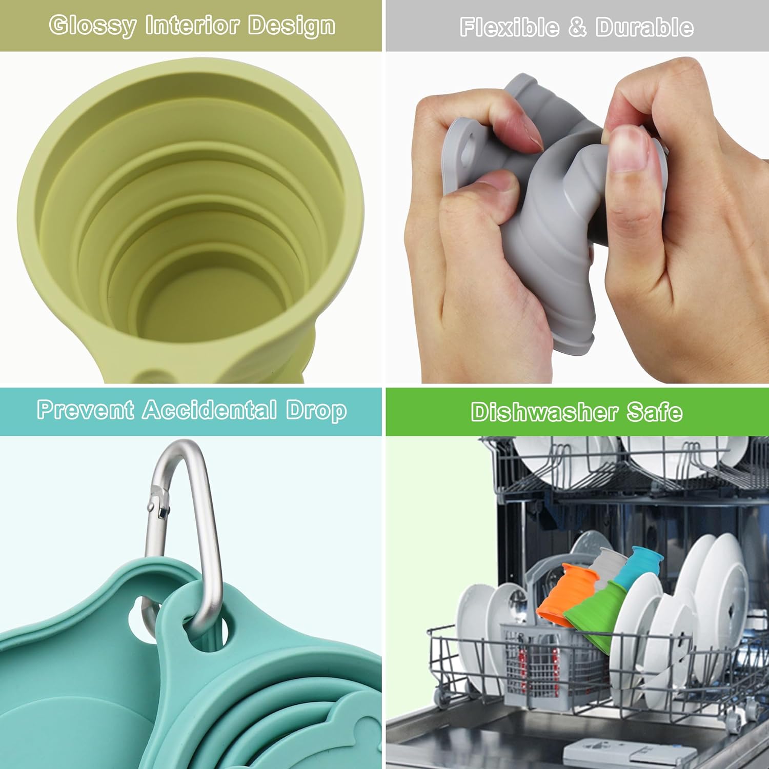 - 💧Upgrade & Thicken: Folding cups are made of food-grade silicone, BPA-free, non-toxic, odorless, durable, reusable. Heatproof from -40F to 446F, silicon cups are built to safely accommodate warm coffee as well as ice-cold beverages.