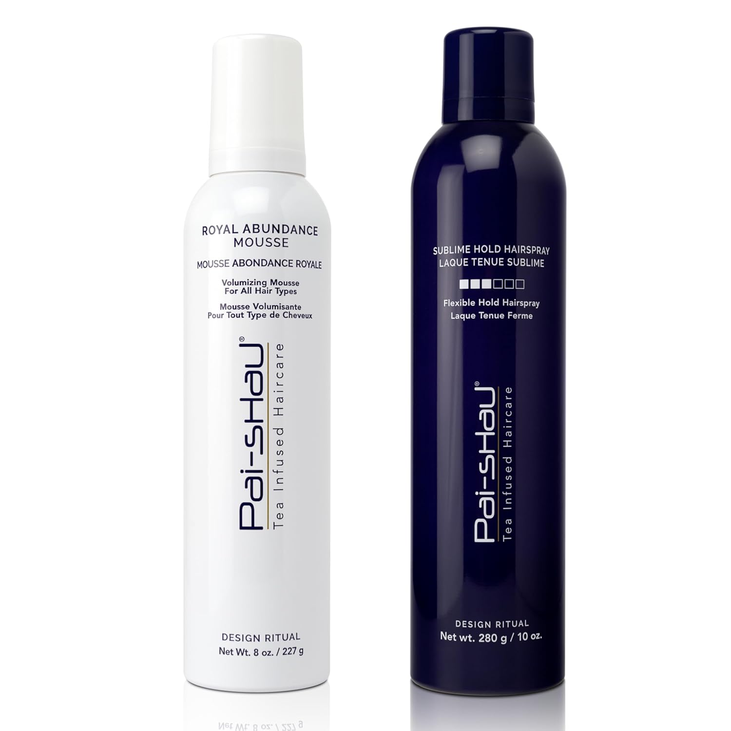 Pai-Shau Royal Abundance Mousse & Sublime Hold Hairspray - Hair Mousse & Hair Spray for Women - Hair Volumizing and Hair Styling for all Hair Types - Flexible Hold Hairspray for Shine and Protection