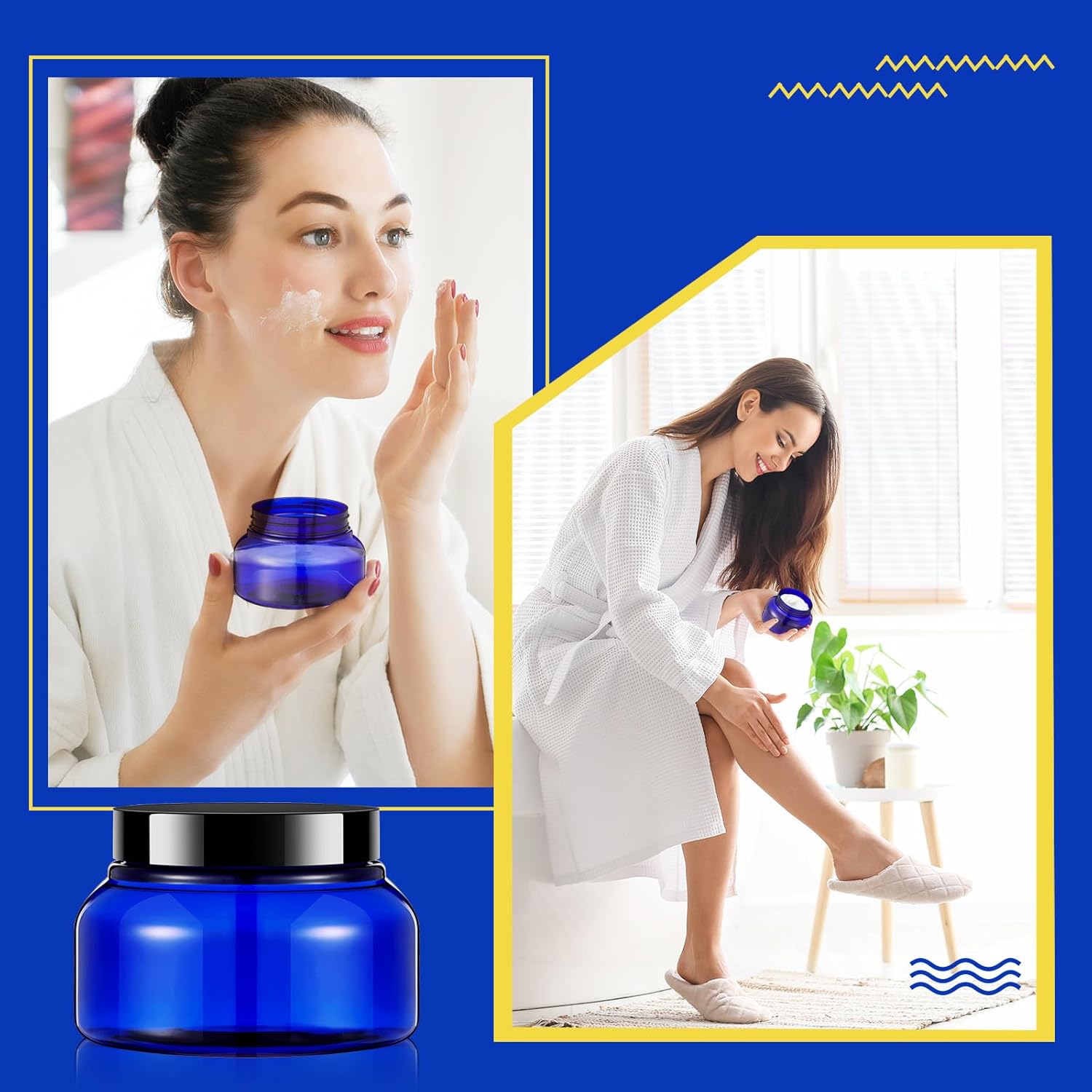 Tessco 24 Pack Plastic Jars with Lids Labels Empty Clear Plastic Jars Round Refillable Cosmetic Containers Body Butter Containers Bulk Sugar Scrub Bottle for Make Up(8 oz,Blue, Black)