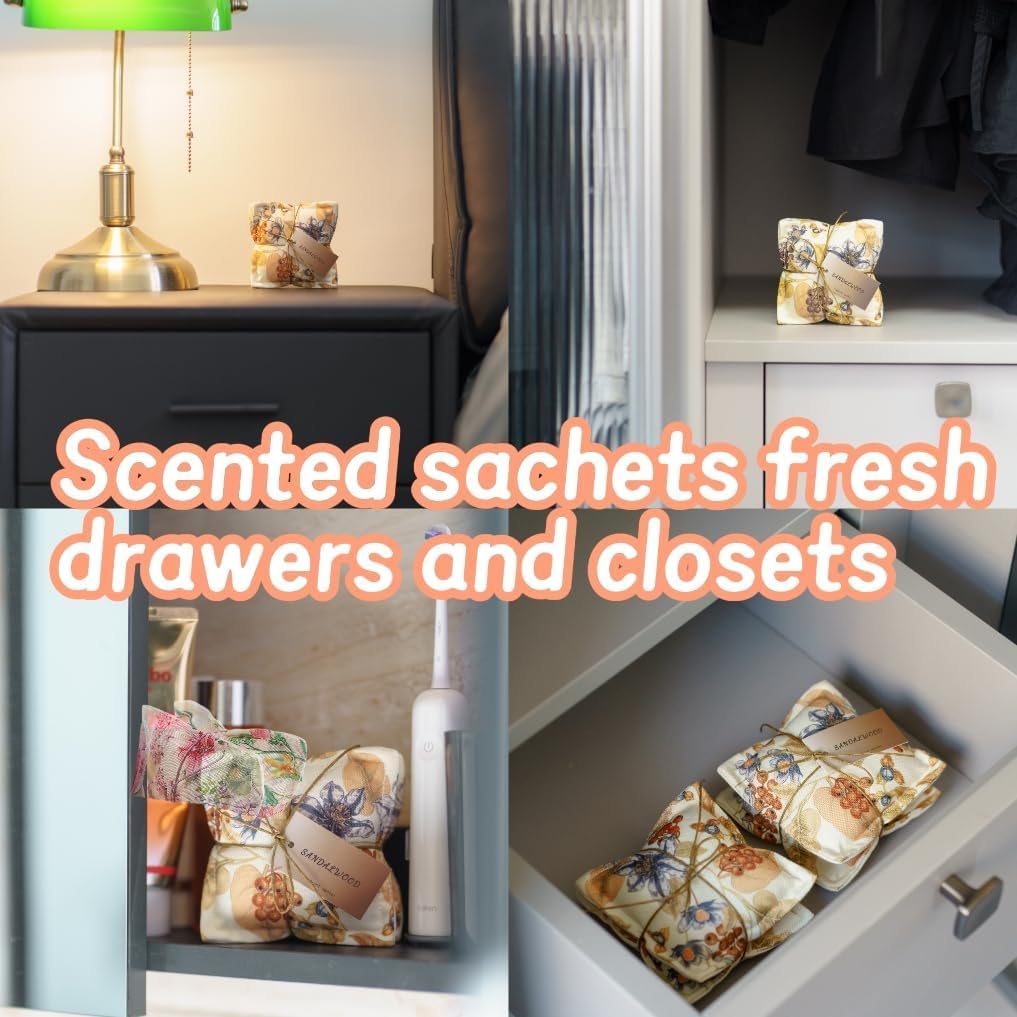 - Pleasing Summer: Sandalwood sachets packets are perfect Summer home decorations for improving atmosphere of the confined space, simply put the potpourri pillow in drawers and closets, wardrobes, handbags and car, fragrance fresheners will long lasting in indoor confined space like bathroom, dress room and bedroom in Summer.