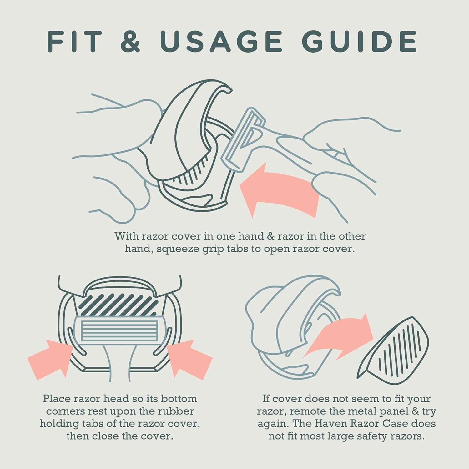 - PACK OF 2 SIMPLE AND EFFECTIVE RAZOR COVERS - Simply snap on the Haven cover directly over your razor head. For larger razors, easily remove the inner plate.