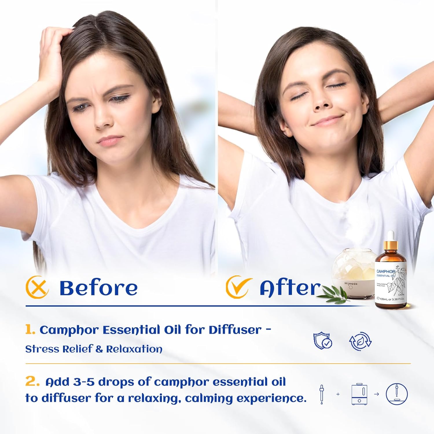 - Multiple Use Scenarios: Add 1-2 drops of camphor essential oil when washing clothes in the washing machine to eliminate odors, commonly used in home cleaning, kitchen, shower, bathtub, toilet, sauna, spa, aromatherapy, outdoor space, car, air freshening, office, bedroom, yoga