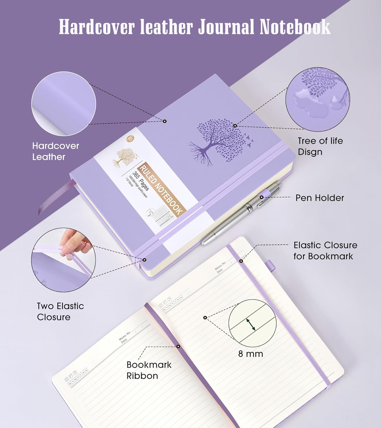 Lined Journal Notebook, 365 Pages B5 Large Journals for Writing Ruled Notebook, Hardcover Leather Journal for Women Men, Daily Notebook for Work, Note Taking, 100Gsm Thick Paper( 7.6'' X 10'' Purple)