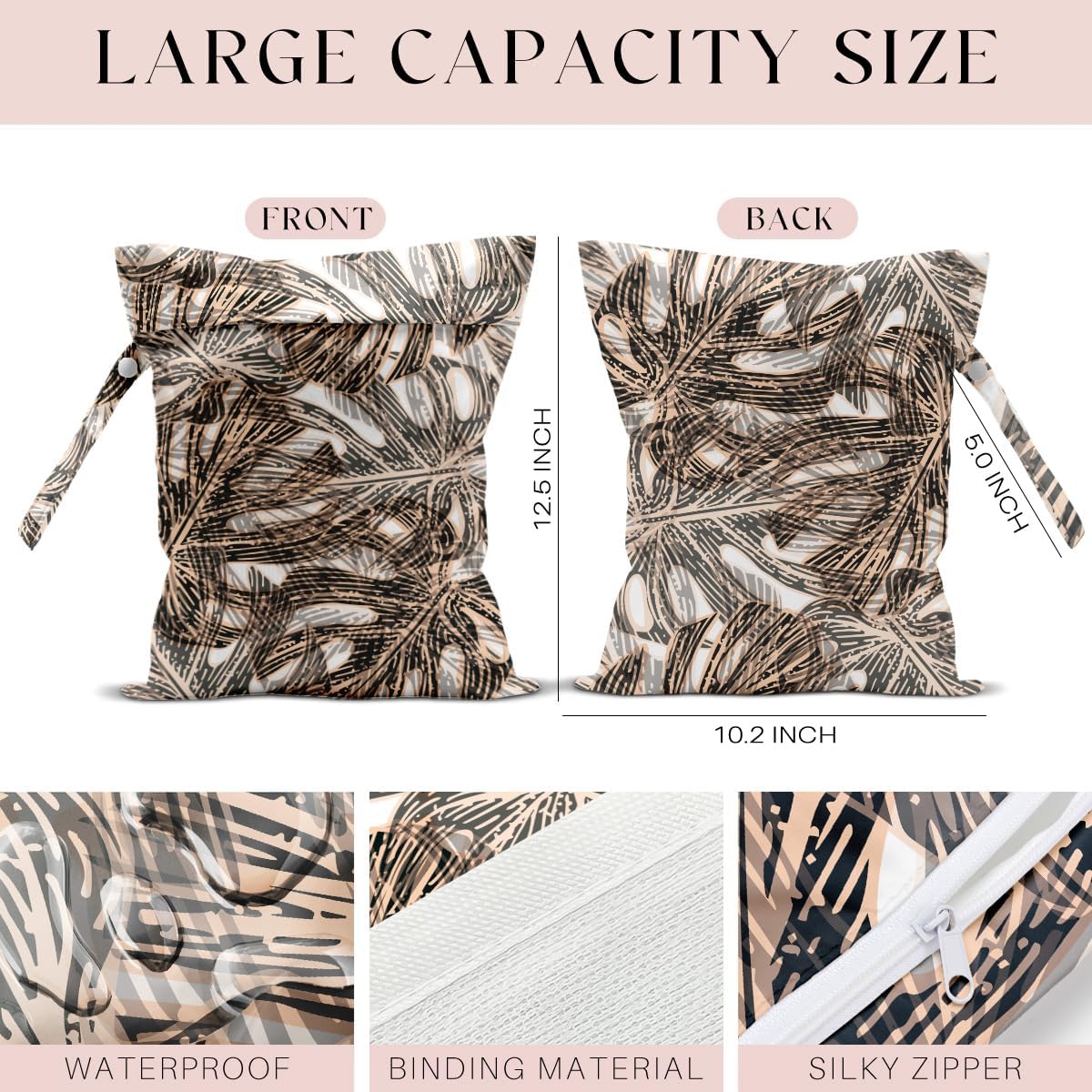 Wet Bag, Wet Dry Bag, Wet Bag for Swimsuit, Travel, Beach, Pool, Diapers, Dirty Yoga Gym Clothes, Makeup Bag, Waterproof Tropical Palm Leaves Decor Jungle Palm Leaf Favors, 12.6” x 10.2”