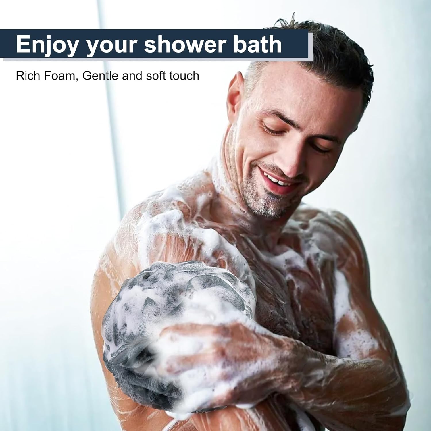 - Save shower gel: The high-density PE material design makes it easier to generate foam by friction, and more foam fits the skin better. Use it with soap and shower gel, so you can enjoy and fall in love with showering!