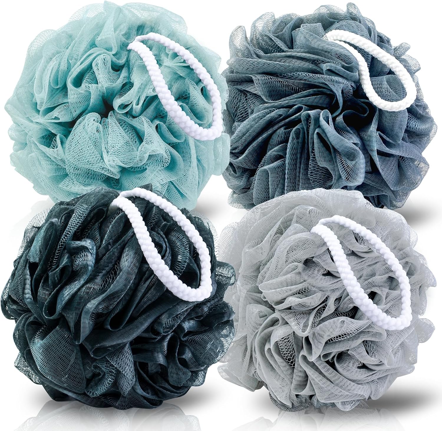 Loofah Sponge XXL-100g 4 Pack, Bath Sponge Soft Mesh Shower Puff Loofah for Men, Exfoliating Body Scrubber for Women, Shower Accessories (Blue Gray)