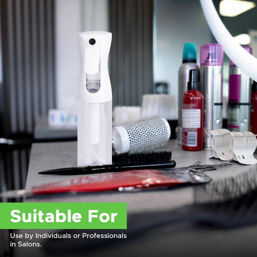 VIGOR PATH Continuous Mist Spray Bottle – Fine Mist Sprayer for Hair, Plants, Cleaning & Beauty – Refillable & Reusable Water Spray Bottle (Clear, 10oz)