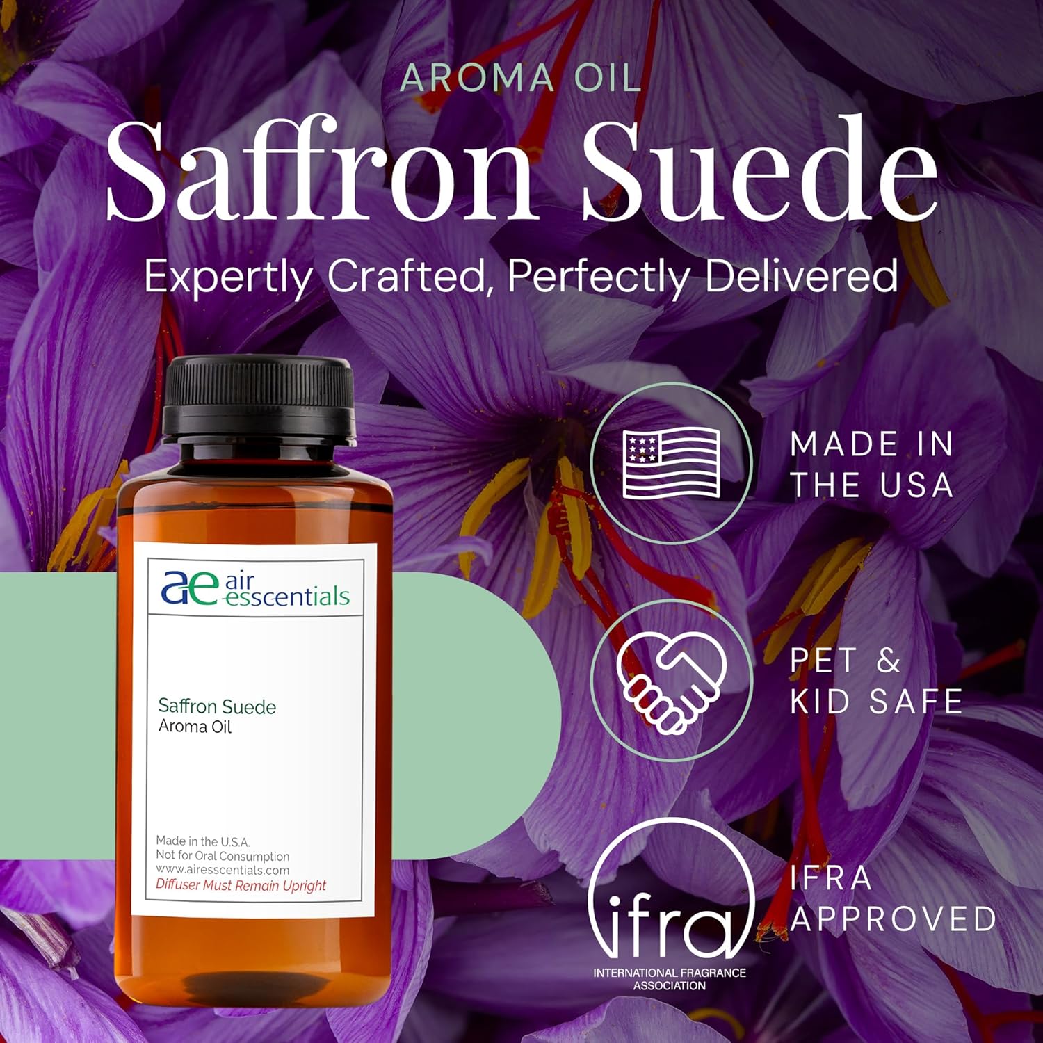 Saffron Suede Aroma Oil, Essential Oils Blend for Diffusers & Scent Machines, Bergamot Fresh & Light Floral, Aromatherapy, Cold Air Diffuser Compatible, 300 mL