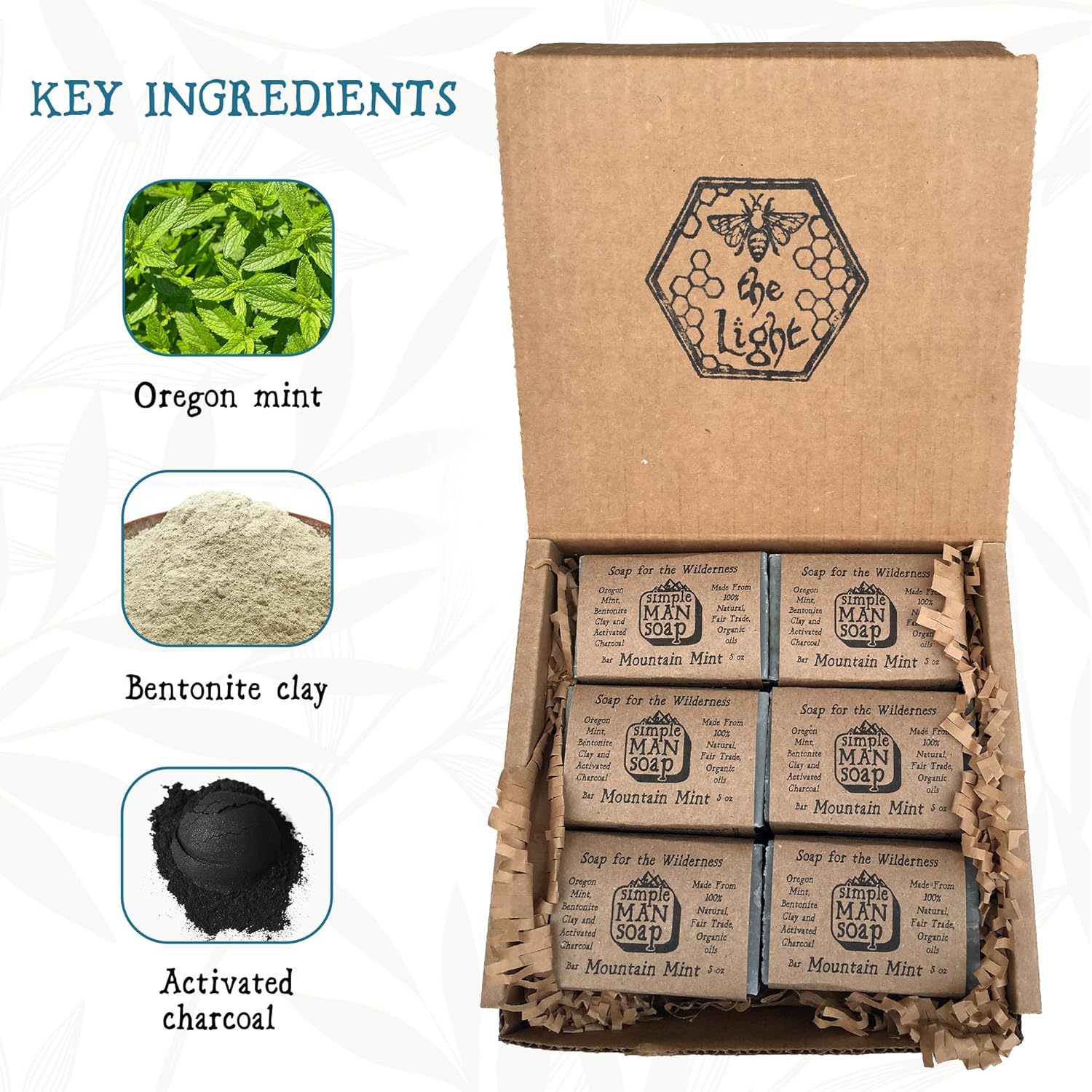 SimpleMan Soap Bar (Mountain Mint) - Men’s soap with Organic & Fair Trade Essential Oils - All Natural, Handmade Man Bath Soap Bars-Pack of 12-2.5 Ounce bars(30 Ounces Total)