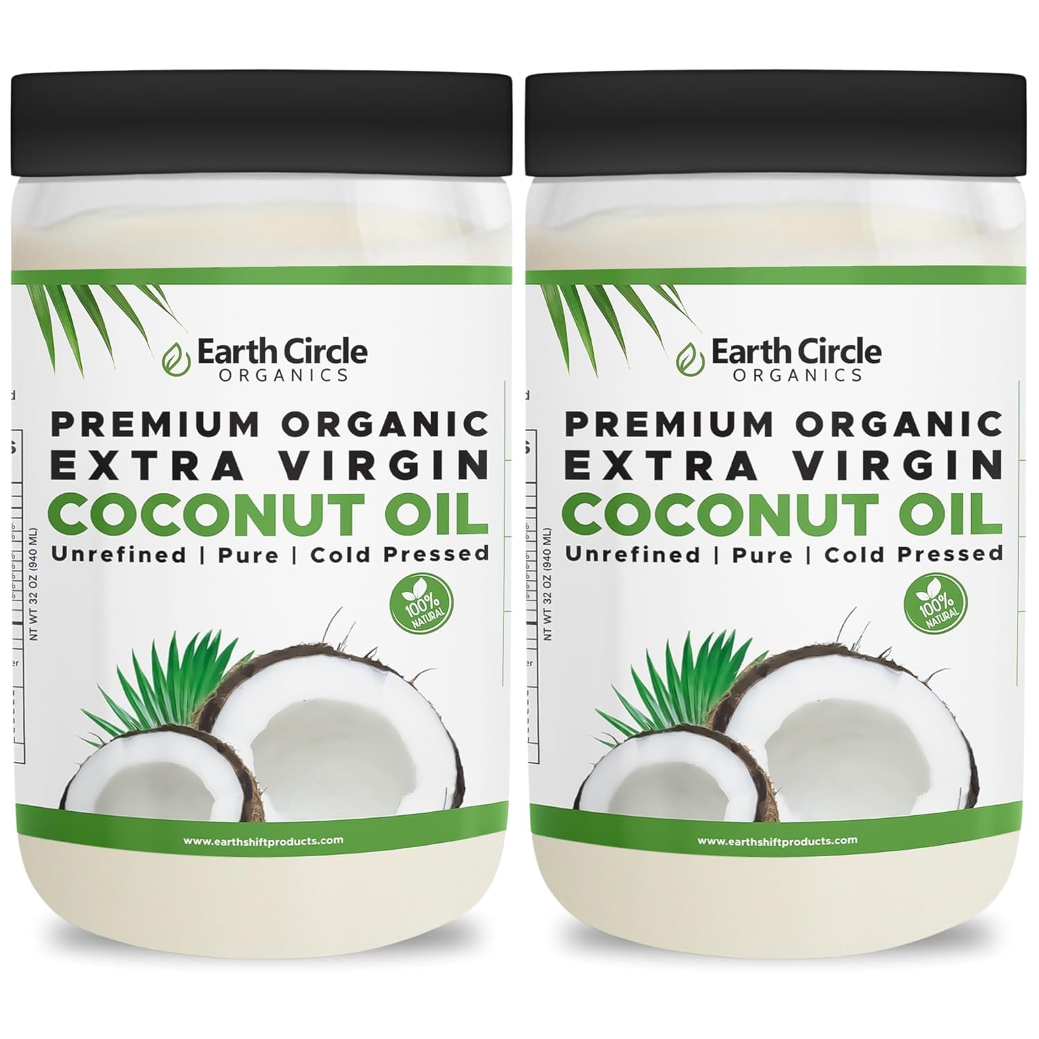 Earth Circle Organics Premium Ultra Pure Extra Virgin Coconut Oil, Cold Pressed, Baking, Smoothies, Skin & Hair Care, Gluten-Free, Keto & Paleo Friendly (32 Ounce Unrefined) - Pack of 2