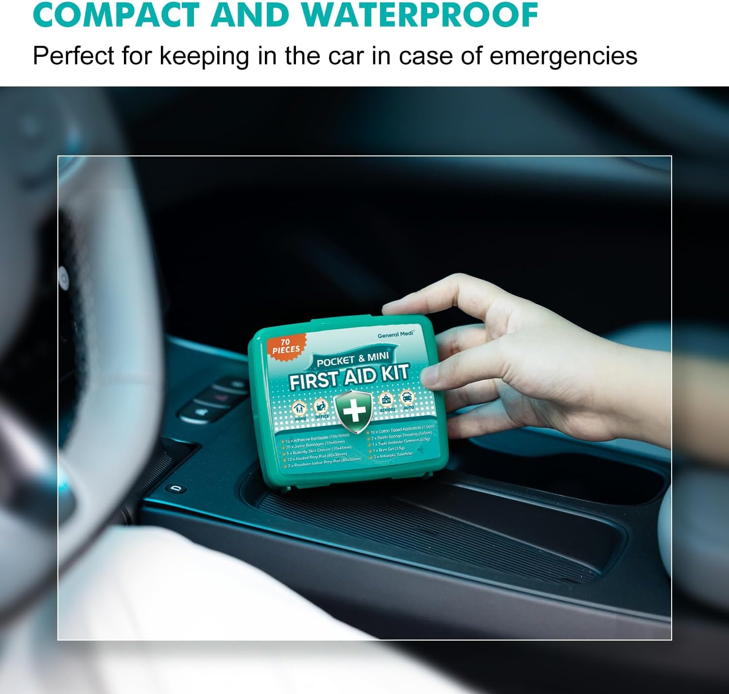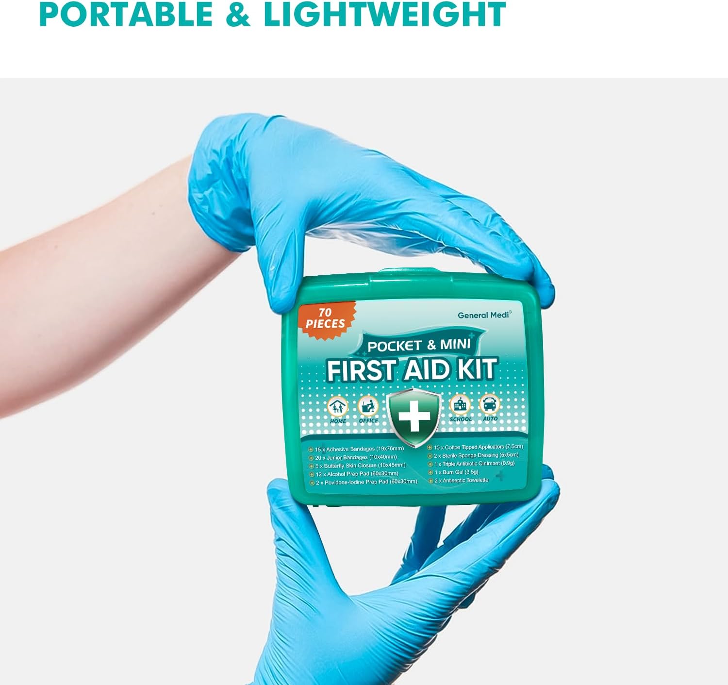 - DESIGN - For maximum efficiency and portability, this basic first aid kit weighs only 0.15 pound and features a compact, travel-friendly design. Perfect for cars , schools , boat , children and more