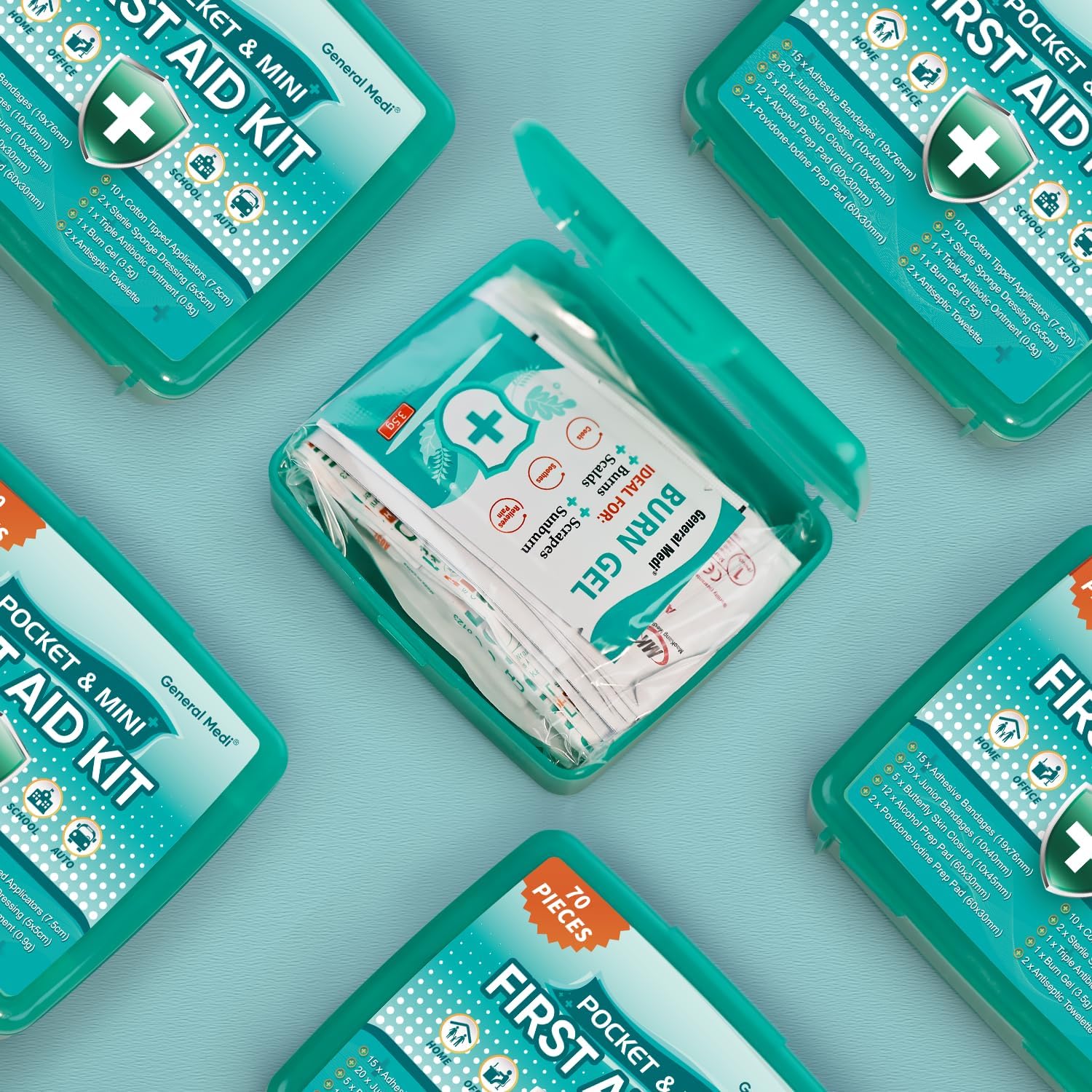 - CONTENTS - Each package contains 6 First Aid Kits, each first aid kit packed with 70 Pieces useful and valuable hospital grade first aid supplies - See the product images and the product description below for a full list of contents. We are confident that you will find that there are more and higher quality contents in our kits than any other on the market.
