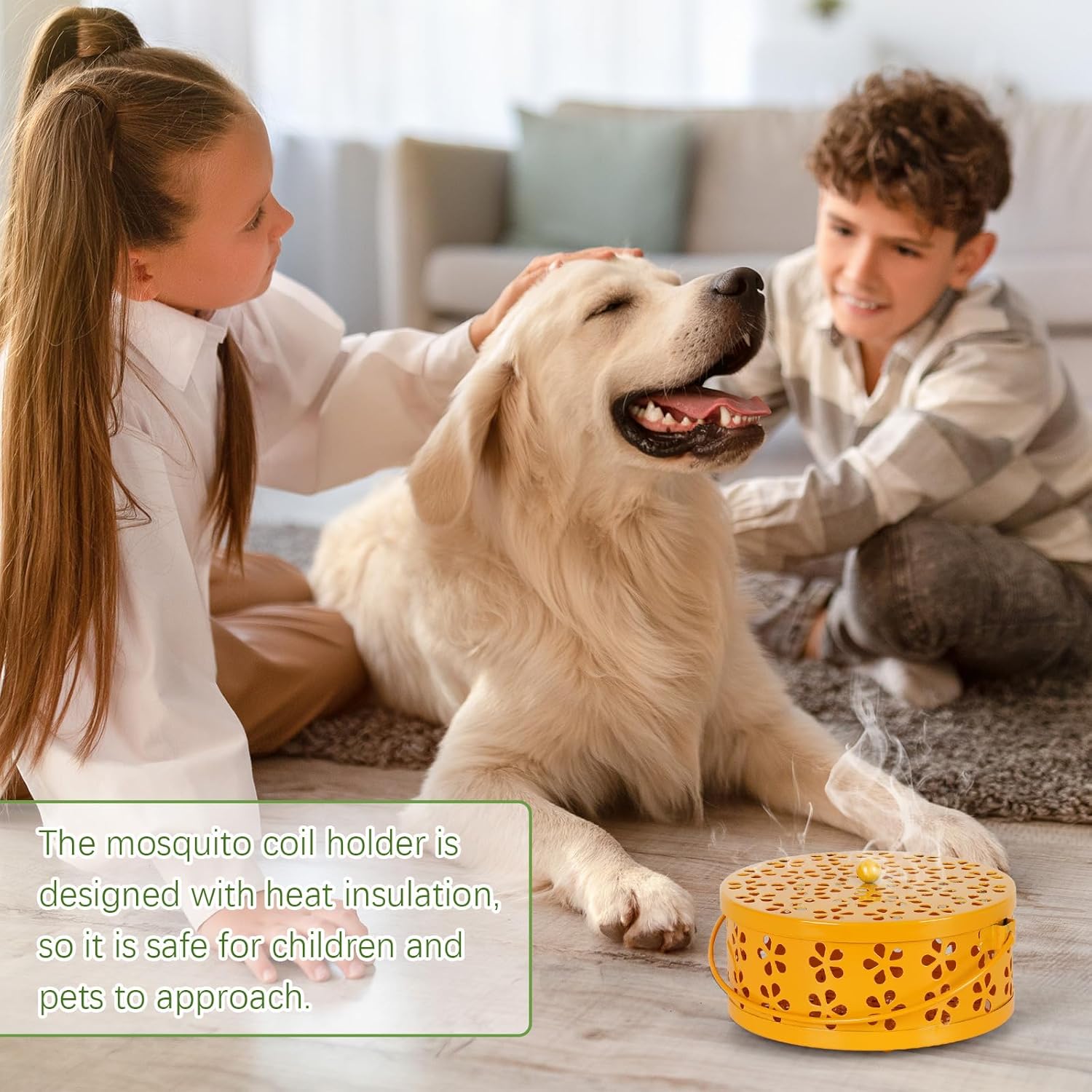 Portable Iron Mosquito Coil Holder with Handle Round Heat-Resistant Incense Holder (2 Pack Yellow)