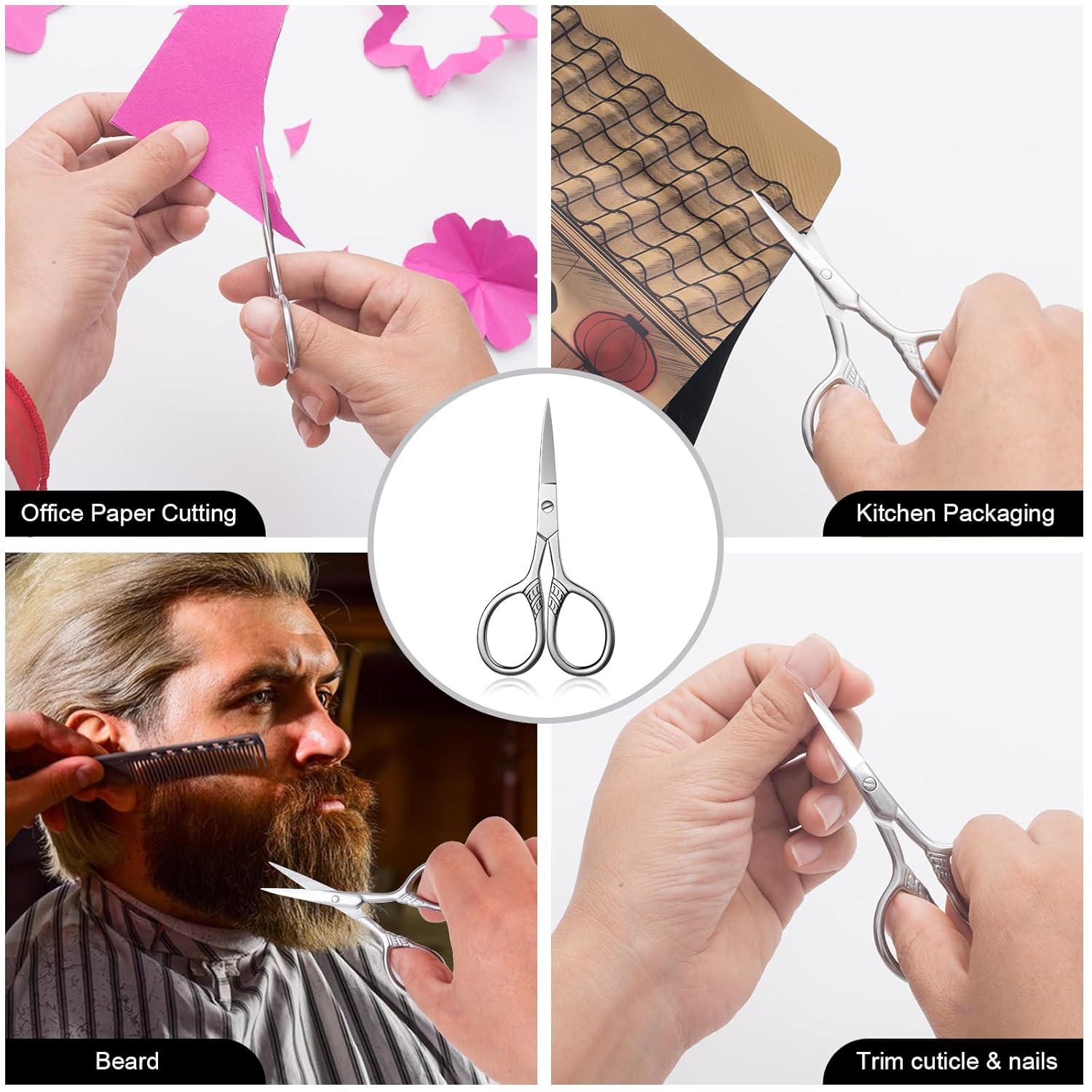 - PROFESSIONAL DESIGN- Stainless SteelVintage Style Grooming Scissors, Perfect for Personal Care Facial Hair Removal and Ear Nose Eyebrow Trimming Stainless Steel Fine Straight Tip Scissors Men