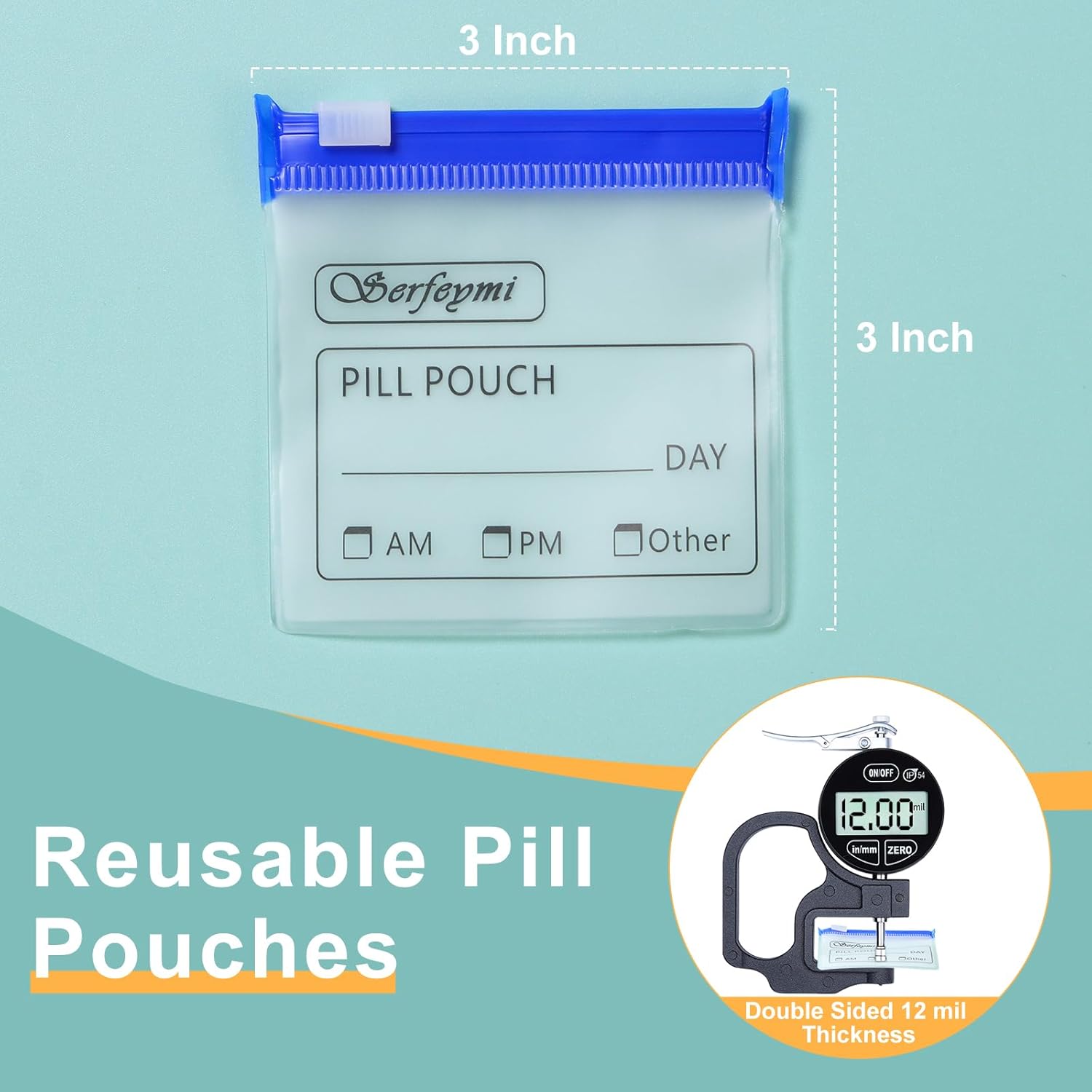 - Pill Security Solution with Color Code Tops Design: The pill pouch bags have a secure slide lock seal for spill-proof storage and easy medication access. This reusable seal keeps pills secure,and offers convenient medication retrieval.