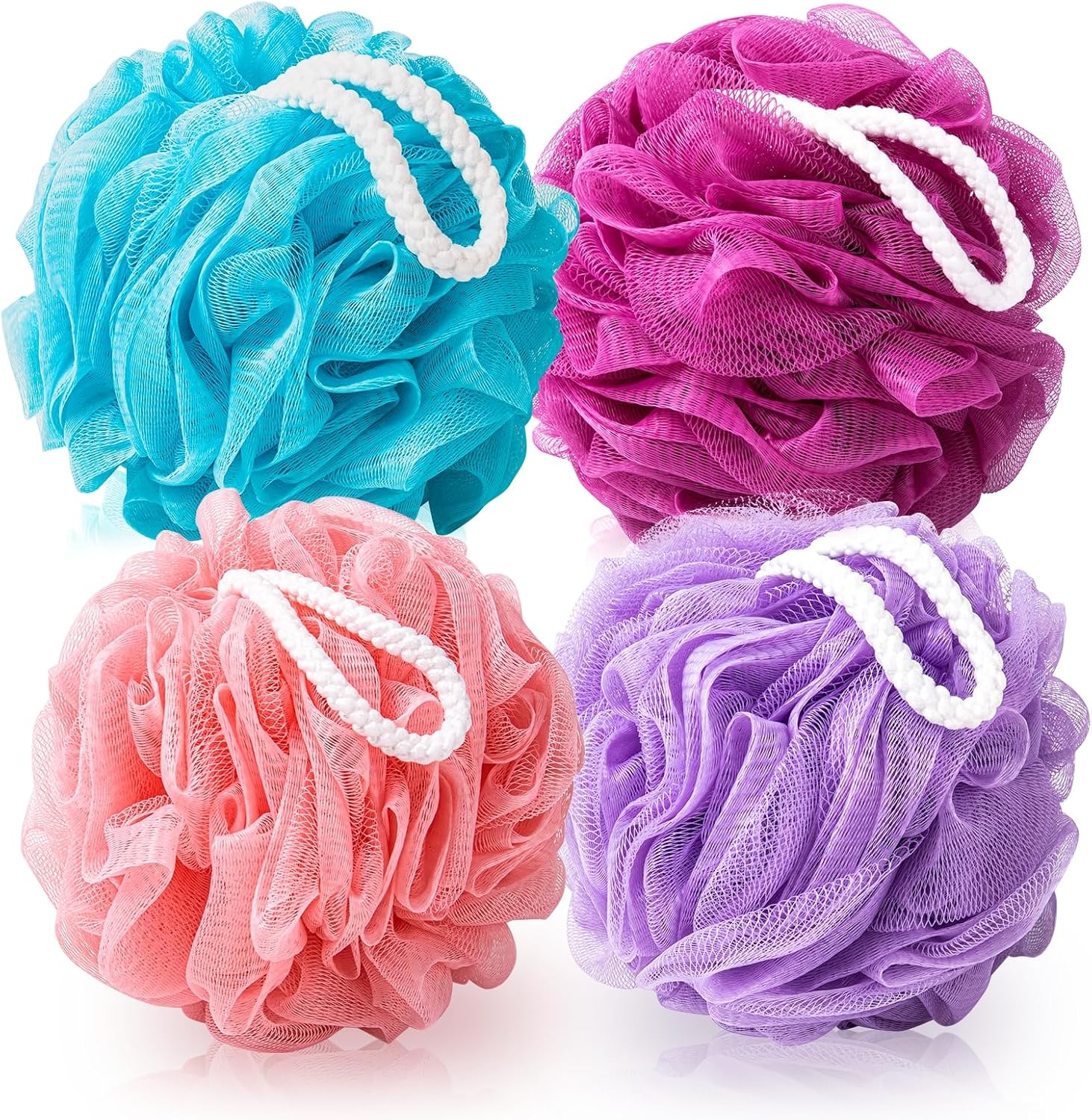 - High-quality shower accessories 4-piece set: The set is rich in quantity, very suitable for different members of the family, made of soft mesh, each loofah is a good choice for exfoliation and showering