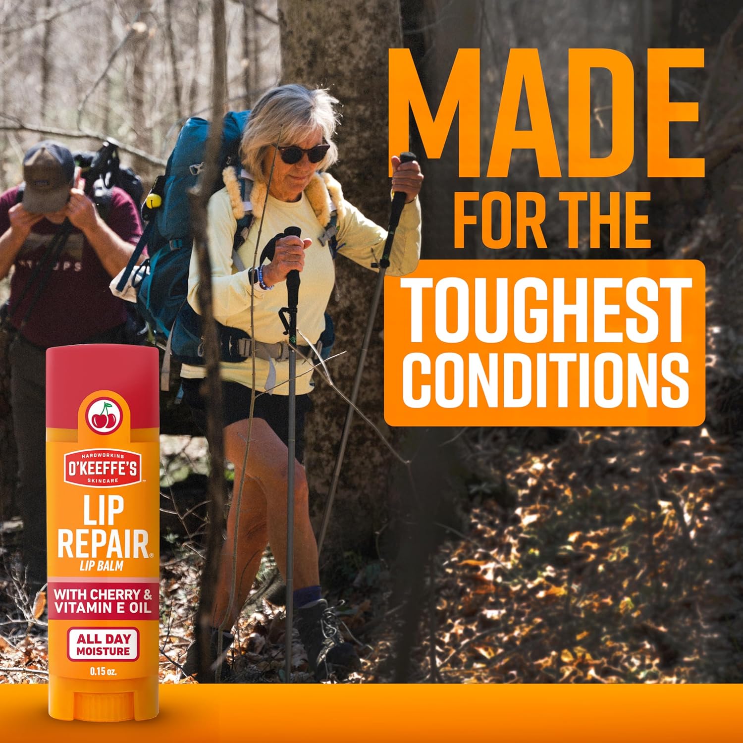 - Lip repair for dry cracked lips: O’Keeffe’s Lip Repair Lip Balm with cherry and vitamin E oil is a lip balm that heals, relieves and repairs extremely dry lips with a blend of seven moisturizing ingredients