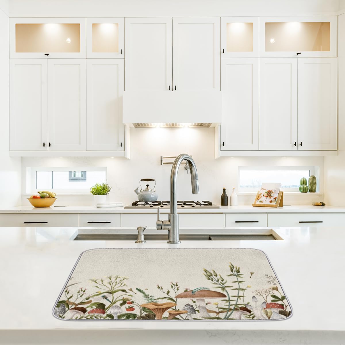 Hexteria Dish Drying Mat for Kitchen Counter Kitchen Drying Mat Dish Rack Mat Dish Drainer Pad Microfiber Absorbent Washable Drying Pad for Countertop, Mushroom