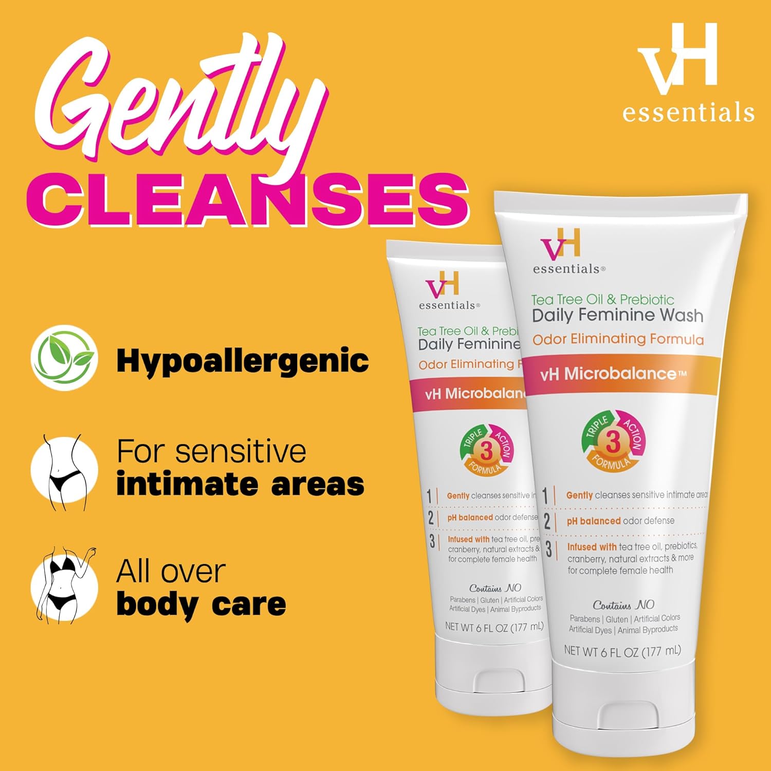 vH essentials, Ph Balanced Daily Feminine Wash, Tea Tree Oil & Prebiotic, 6, Fl Oz, (Pack Of 2) 54306 Clear