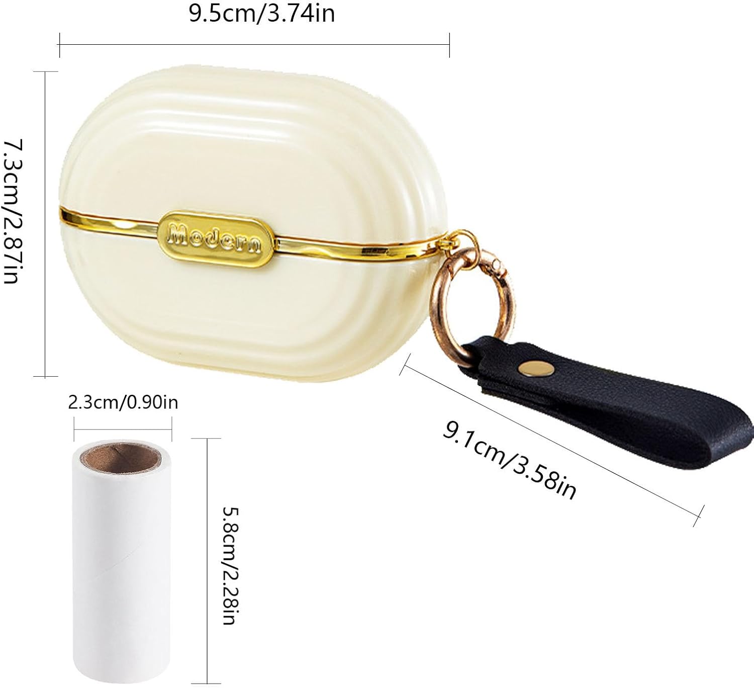 Handy Double-Sided Travel Lint Roller with Hand Strap, 7-Fill Luxury Clothing Bag Dust Fluff Adhesive Reusable Mini Extra Adhesive Dog Cat Pet Adhesive, Small Pocket Reusable Lint (White)