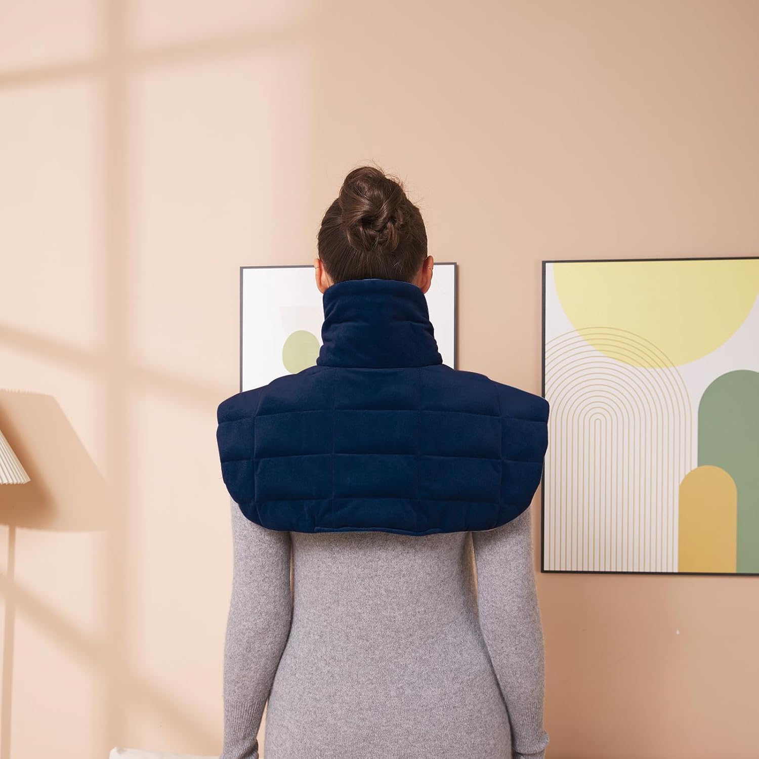 Ambershine 19''x24'' Weighted Neck & Shoulder Heating Pad, 2.5lbs with 12 Temperature Settings& 4 Auto-Off Timers, Pain Relief for Neck/Shoulder/Back, Christmas Gifts for Women Men Mom Dad(Navy Blue)