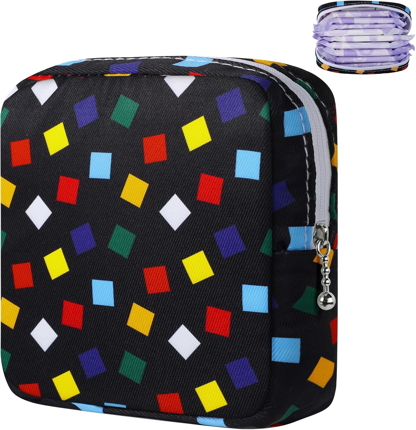 Period Bag Pouch, Canvas Sanitary Napkin Storage Bag for Girls Womens, Portable Sanitary Napkin Period Pad Pouch for Purse, Small Make Up Bags(Black Diamond)