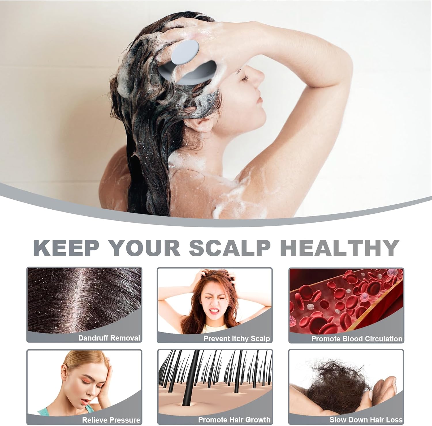 Silicone Scalp Massager, Scalp Scrubber for Hair Growth with Soft Bristles, Scalp Exfoliator Brush Dandruff Removal Shampoo Brush for Wet Dry Scalp Care (Grey)