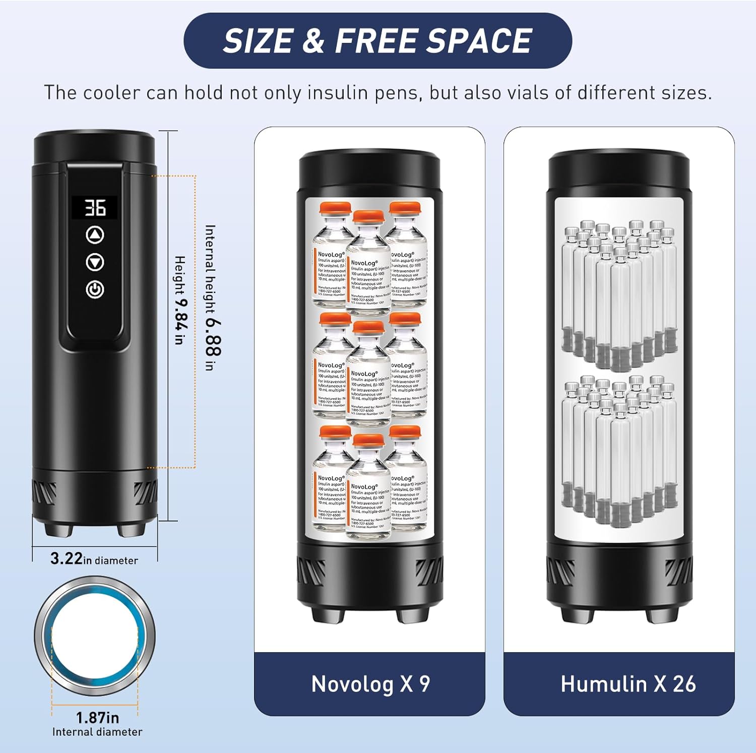 - LARGE CAPACITY: The diabetic supplies cooler has a large storage space inside, which can hold up to 7 standard insulin pens, just like a walking medicine refrigerator; Notes: Cooler should not be placed in luggage when energized, need to be ventilated