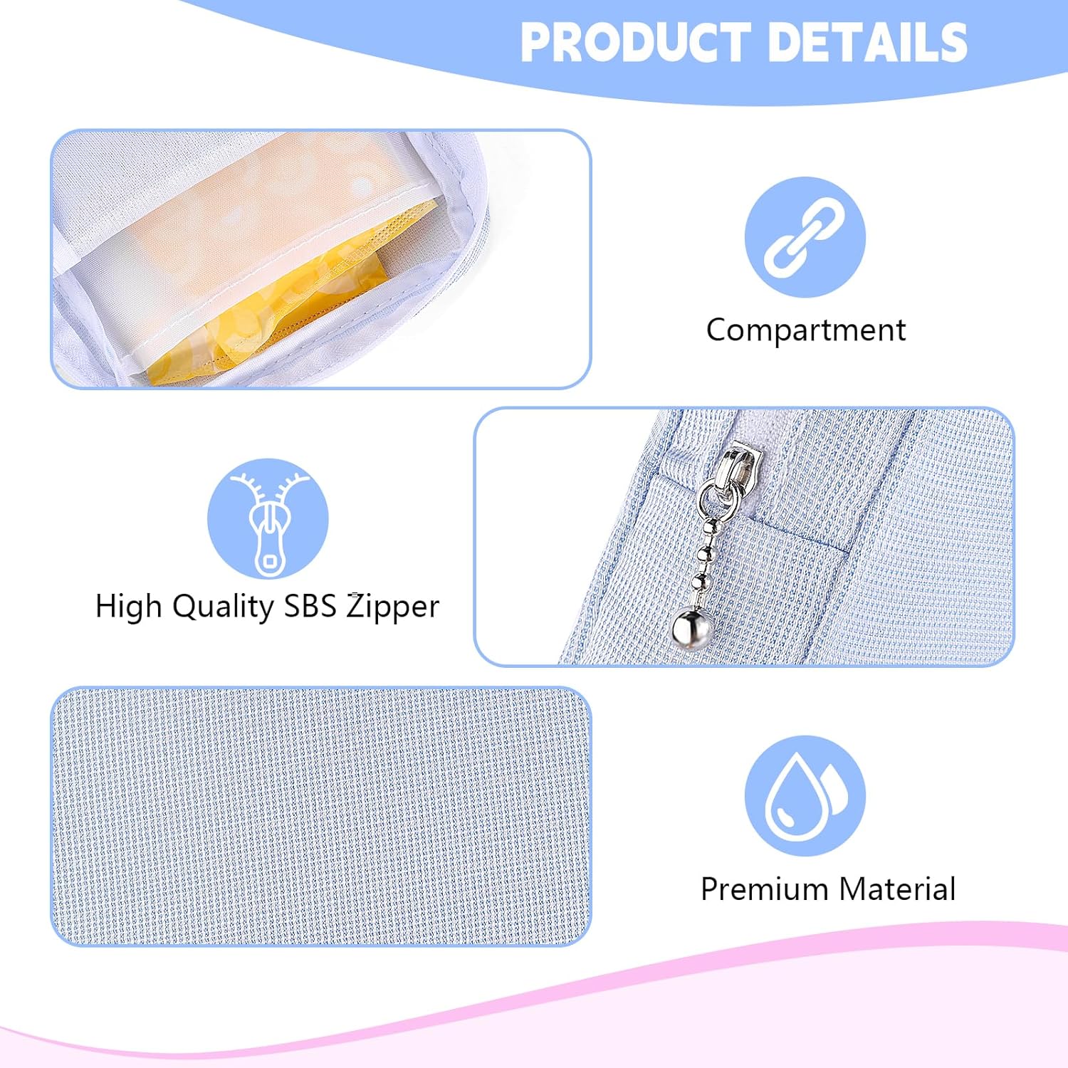 • 【Multifunctional Bag】The menstrual pad pouch is not only for storing sanitary napkins and disposable pads, it is also perfect for daily use or travel essentials, storing lipstick, first aid kits, band-aids, lip balms, cosmetics, mini mirrors, jewelry, keys, cash, credit cards, etc.