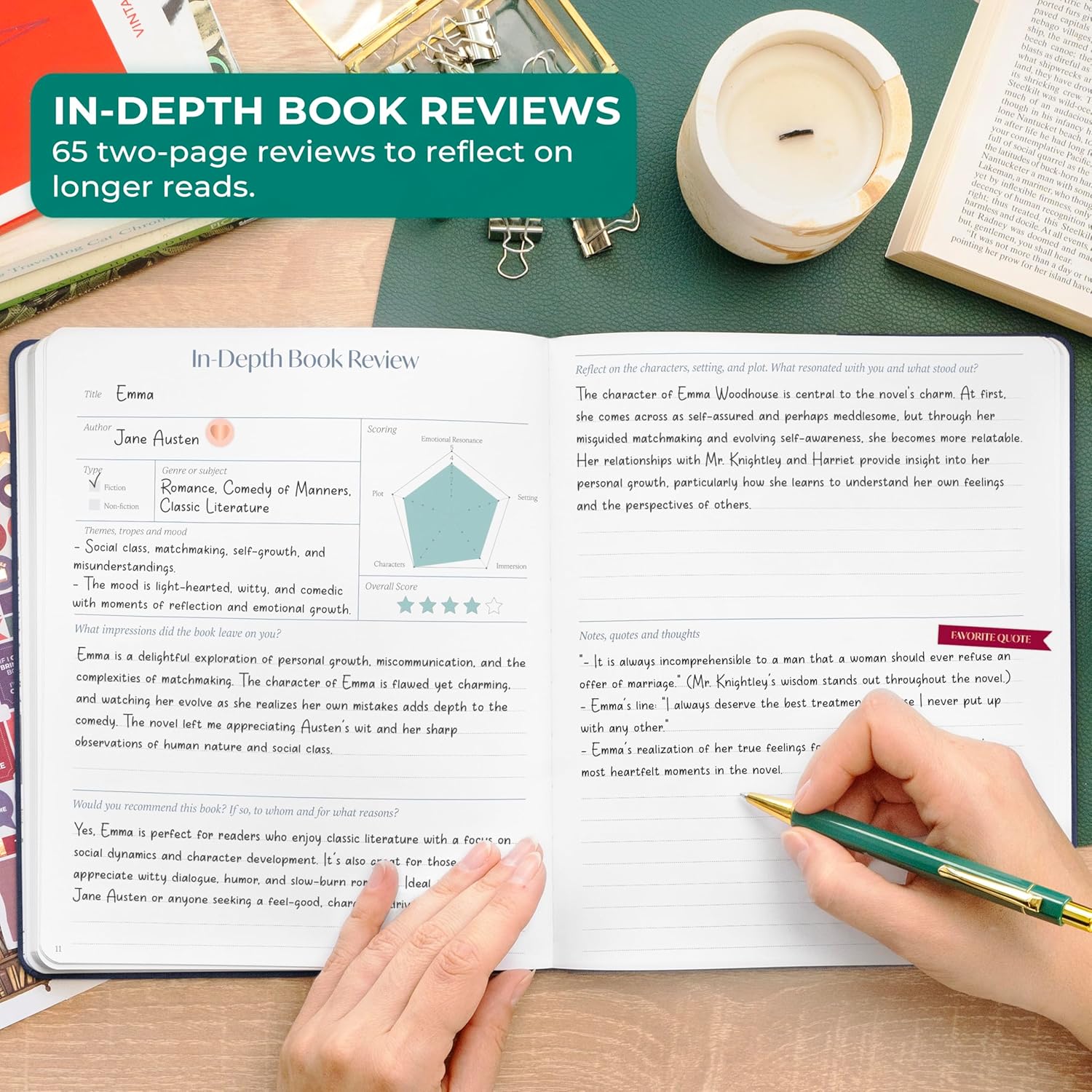 - INCLUDES IN-DEPTH & BRIEF BOOK REVIEWS – The book log journal has two types of book reviews, including in-depth, two-page reviews for more substantial reads, and brief, one-page reviews for shorter or more lighthearted reads.