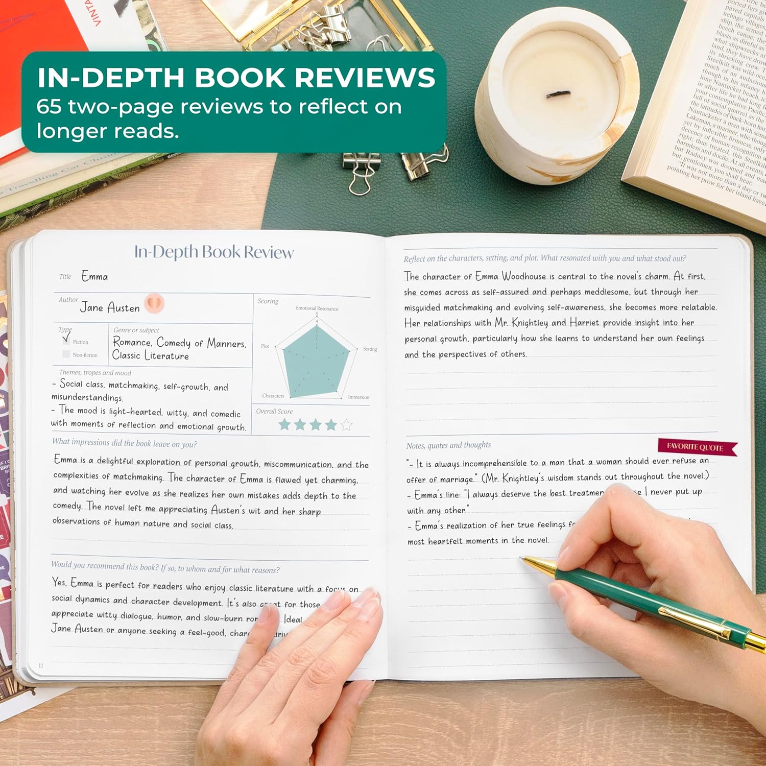- INCLUDES IN-DEPTH & BRIEF BOOK REVIEWS – The book log journal has two types of book reviews, including in-depth, two-page reviews for more substantial reads, and brief, one-page reviews for shorter or more lighthearted reads.