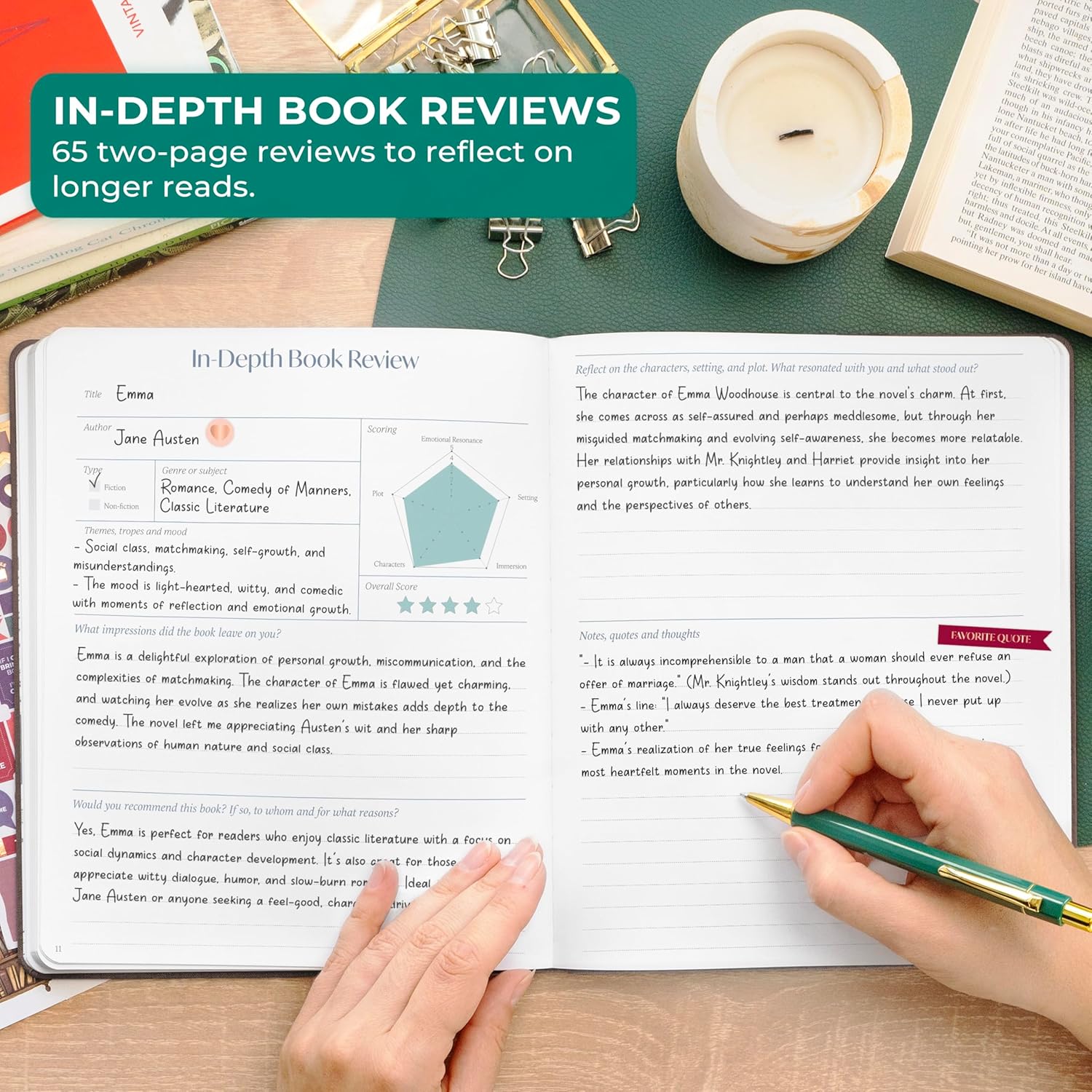 - INCLUDES IN-DEPTH & BRIEF BOOK REVIEWS – The book log journal has two types of book reviews, including in-depth, two-page reviews for more substantial reads, and brief, one-page reviews for shorter or more lighthearted reads.