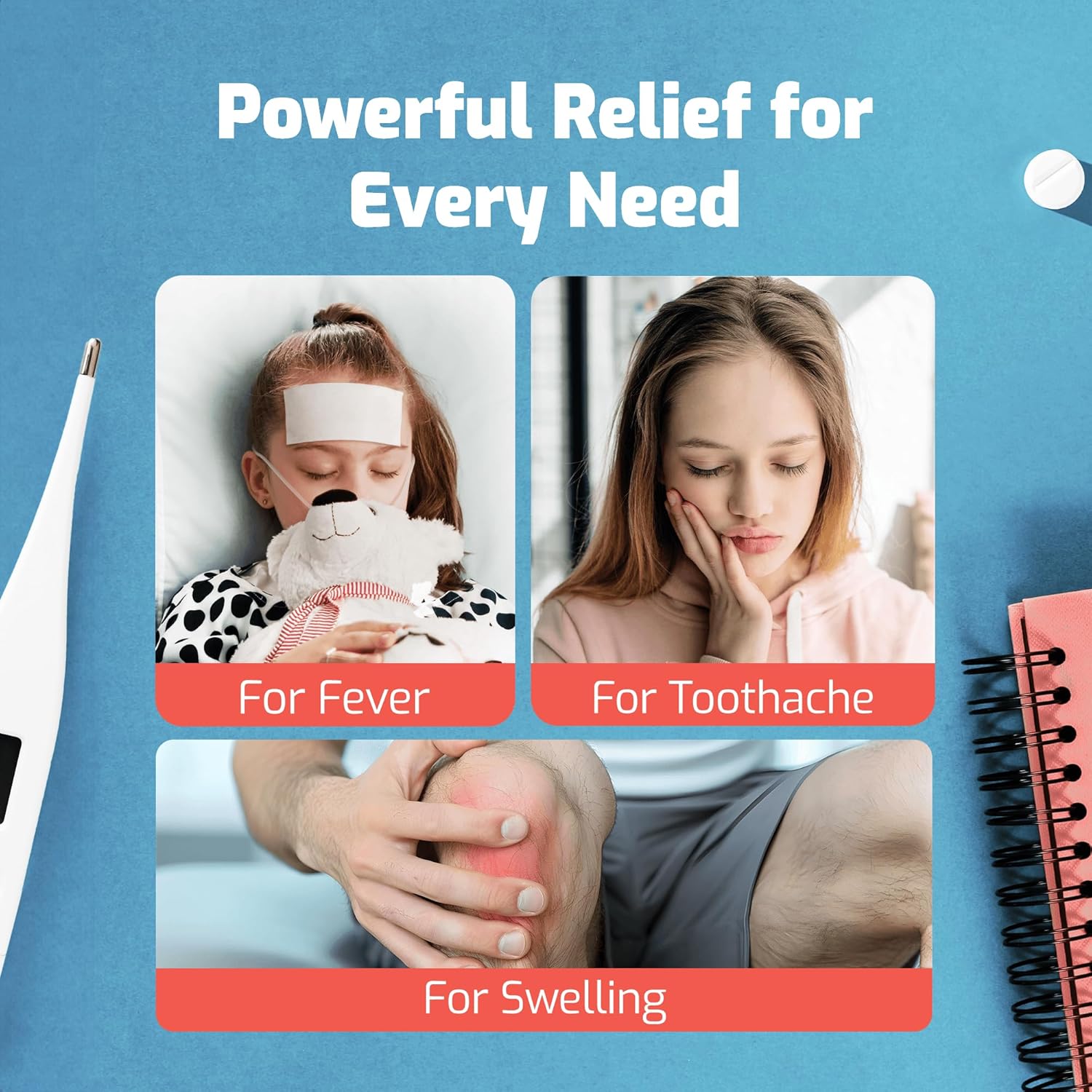 - UNWRAP RELIEF ANYTIME, ANYWHERE - Individually-wrapped compact pouches are suitable as on-the-go cooling patches for hot weather, fever cooling patches for kids, infant fever reducer, an active cooling patch for headaches, swelling, burn relief, toothaches, soreness after exercise, even heat stroke.