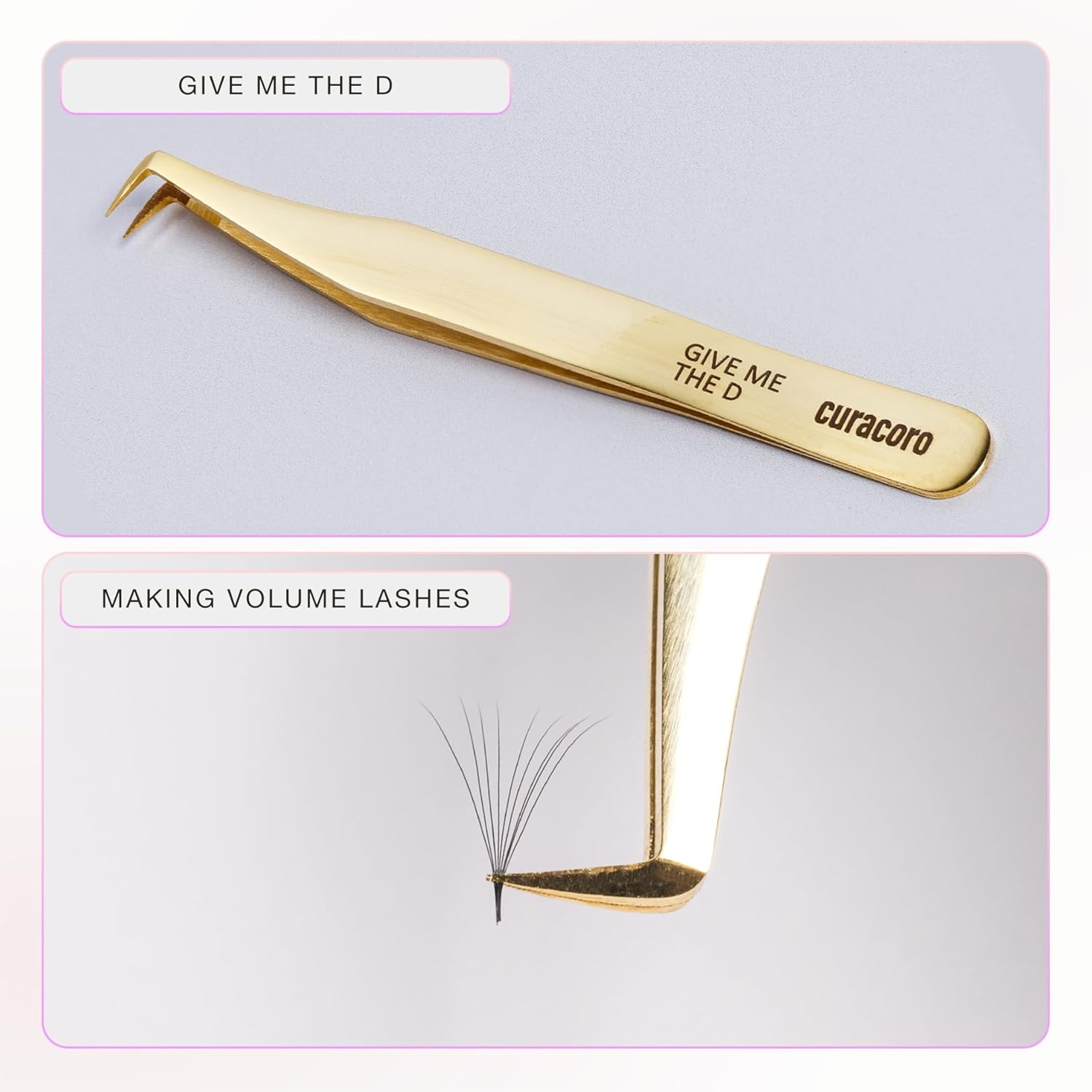 Curacoro Lash Tweezer - Professional & Precision Fiber Tip Grip Lash Tweezers for Eyelash Extensions, Multi Shapes & Purposes Tweezers for Volume, Isolation & Classic Lashes (Gold, Give Me the D)