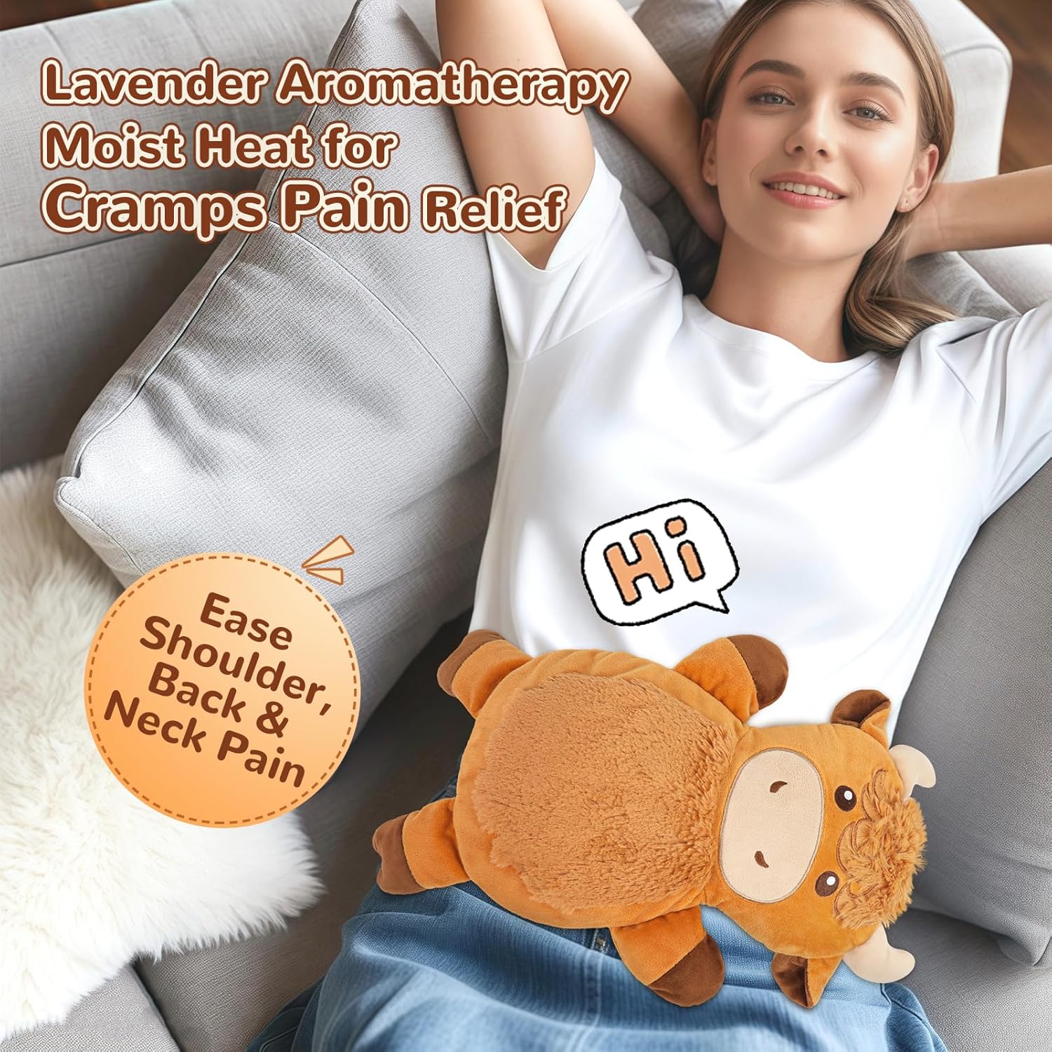 - Unique and Heartfelt Gift for Cow Lovers: The little Highland Cow Cora is waiting for you! Why not show your considerate care by surprising your family, kids, and friends with an exquisite packaging and excellent design menstrual heating Cuckool Highland Cow Cora? It will definitely be a special and useful gift for all Cow lovers. Take it home! Moo~Moo.