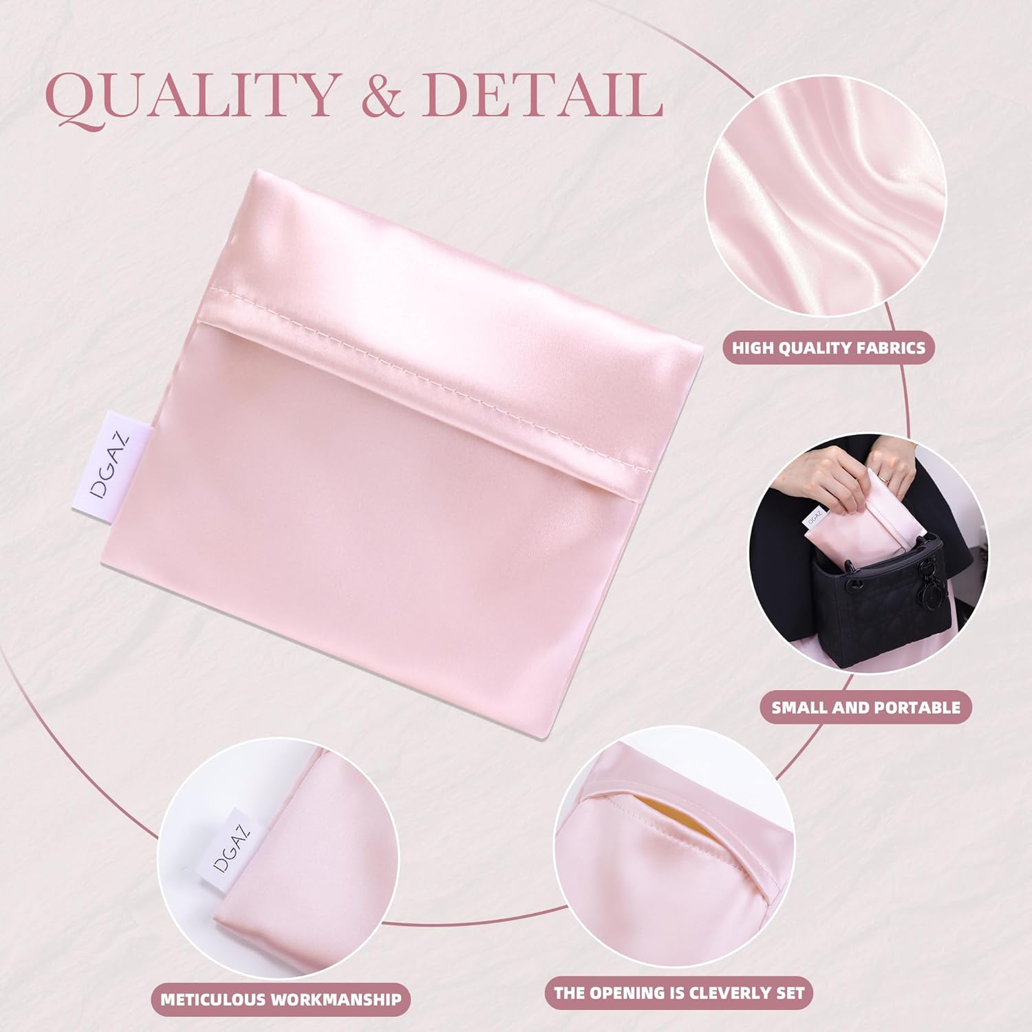 DGAZ Silk Sanitary Napkin Storage Bag, Period Bag for Teen Aged Girls, Portable Period Bag for Panty Liners/Menstrual Cup/Small Tampons,Mini Makeup Bag for Purse(Pink)