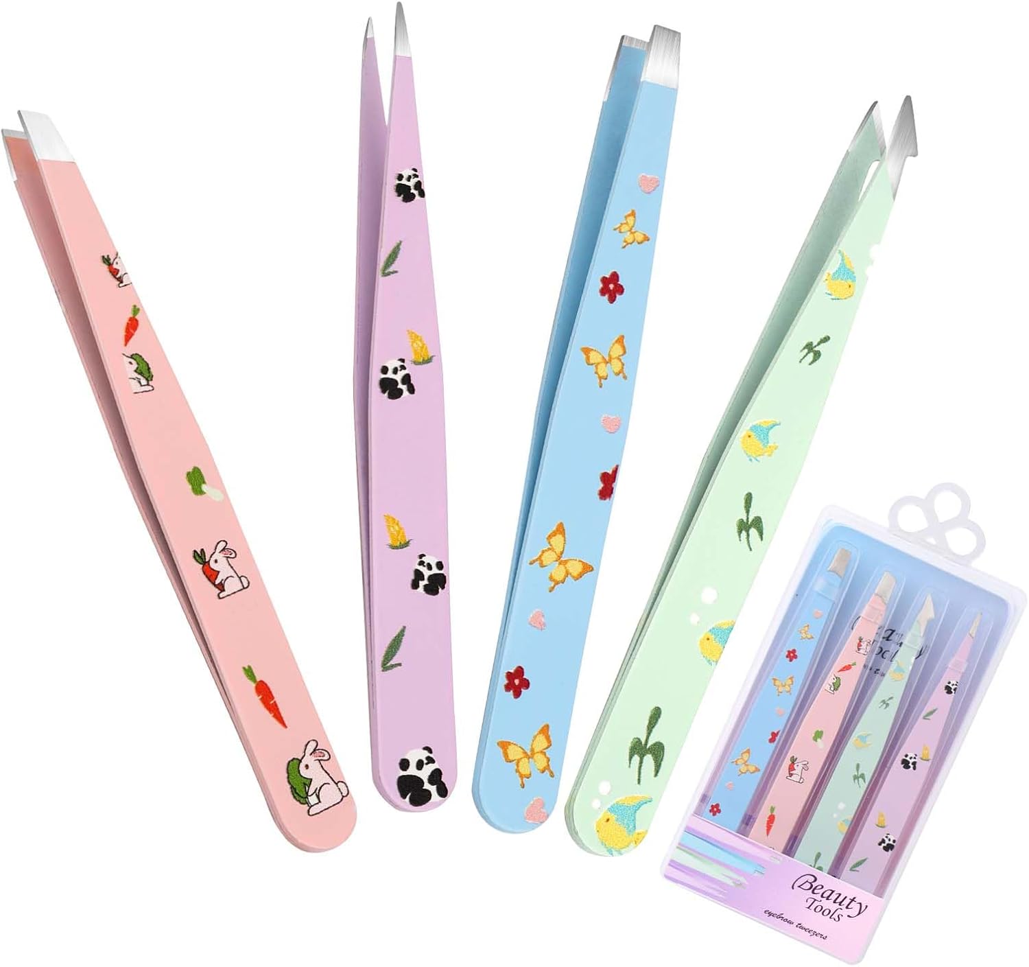 FADLASH Professional Multicolor Tweezers 4Pcs High Precision Stainless Steel Eyebrow Tweezers for Facial Hair, Eyebrow Grooming, Ingrown Hair Splinter Removal Suitable for Women and Men