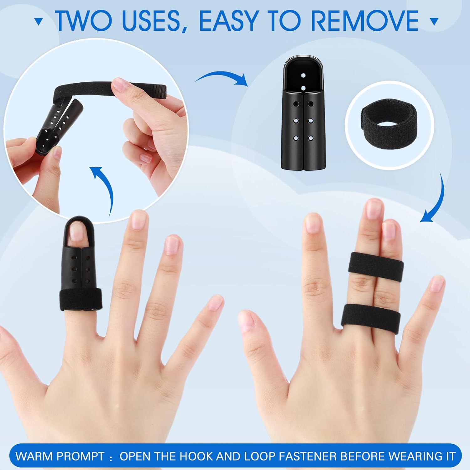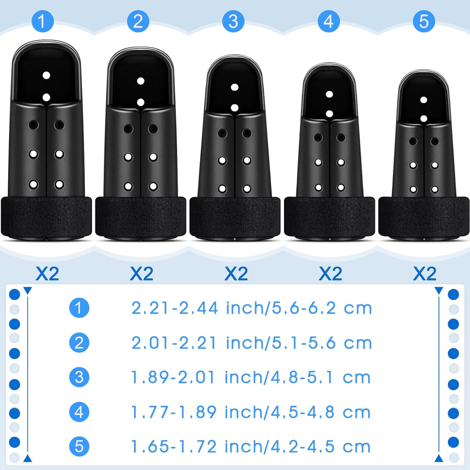 - Package details: you can receive 10 pieces mallet finger splint in the package, there are 5 different sizes to fit your thumb, pinky, index, middle, or ring fingers, you just need to combine the finger sleeve and finger splint by simply wearing, and then put on the finger splint over top and covering the tip of the finger