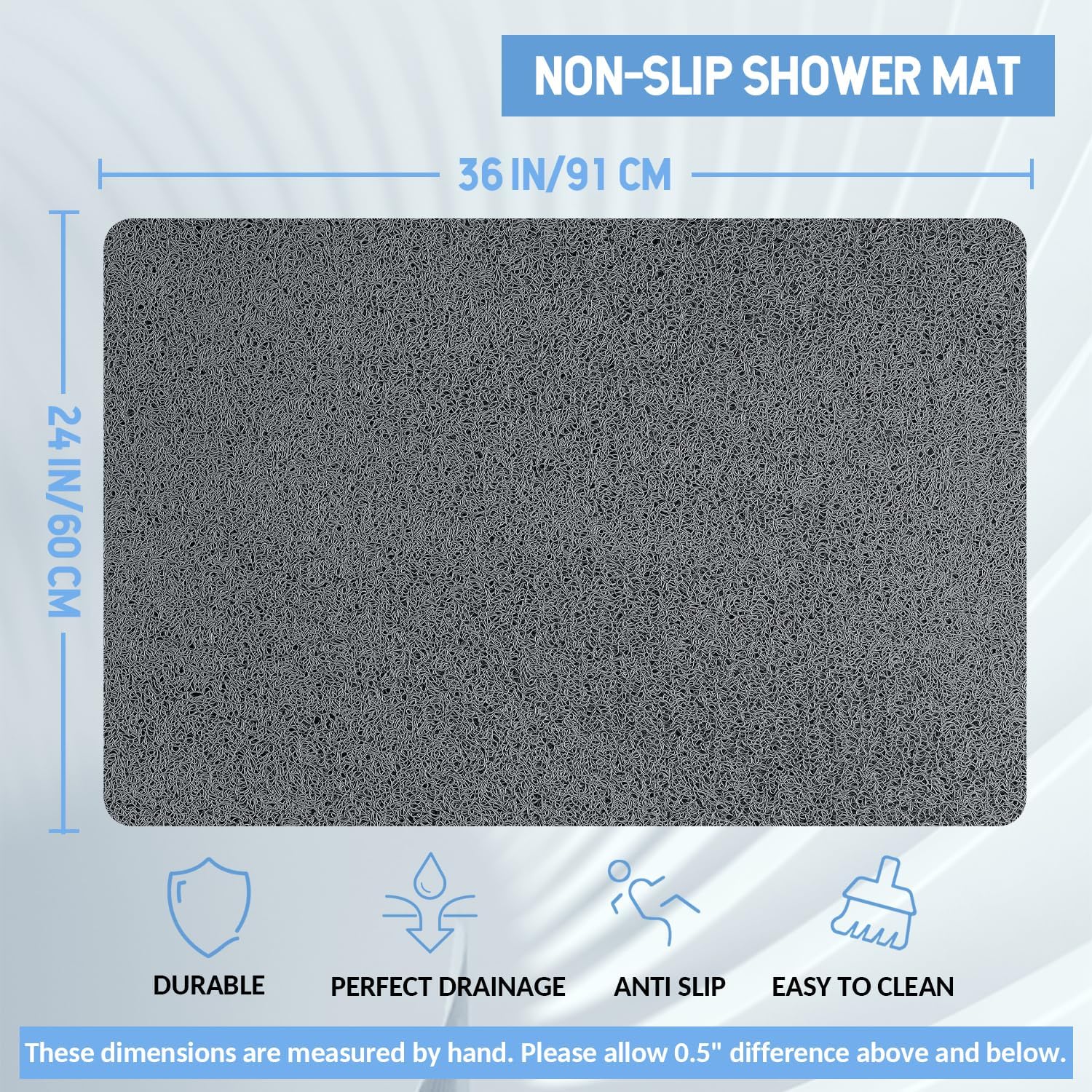 Non-Slip Bathtub Mat, Anti Slip Shower Mat, Fast Drying Bathtub Mats, Foot Scrubber Mat, Anti Slip Mat for Tub, Floor, Bathroom, Kitchen, Home, Hotel (Grey 36"×24")