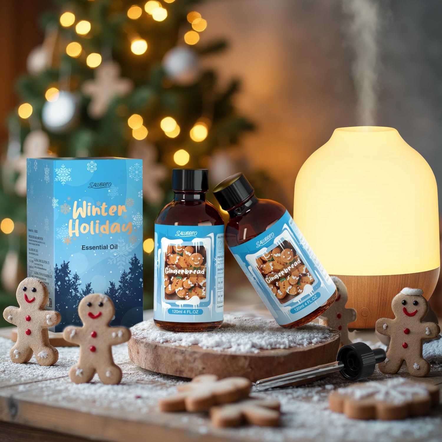 - Highly Concentrated Formula: SALUBRITO gingerbread essential oil is never diluted, ensuring a powerful and intense scents. 4fl.oz (120ml) of the gingerbread oil will last a long time. Warm winter diffuser oils can give you a taste of winter at home. This is a great choice if you are looking for a strong scent