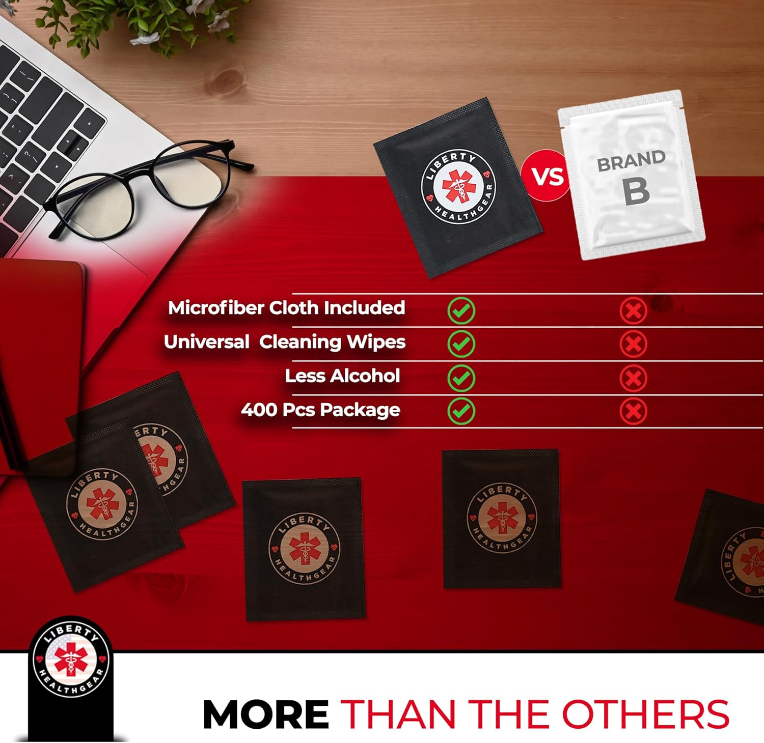 - Eyeglass Wipes: Liberty HealthGear pre-moistened glasses cleaner lens wipes are specifically developed to provide a clean, streak-free finish with each usage. These eye glass cleaner wipe help keep eyeglasses, camera lenses, & screen cleaning wipes and computer displays clean without leaving stains or sticky residue.