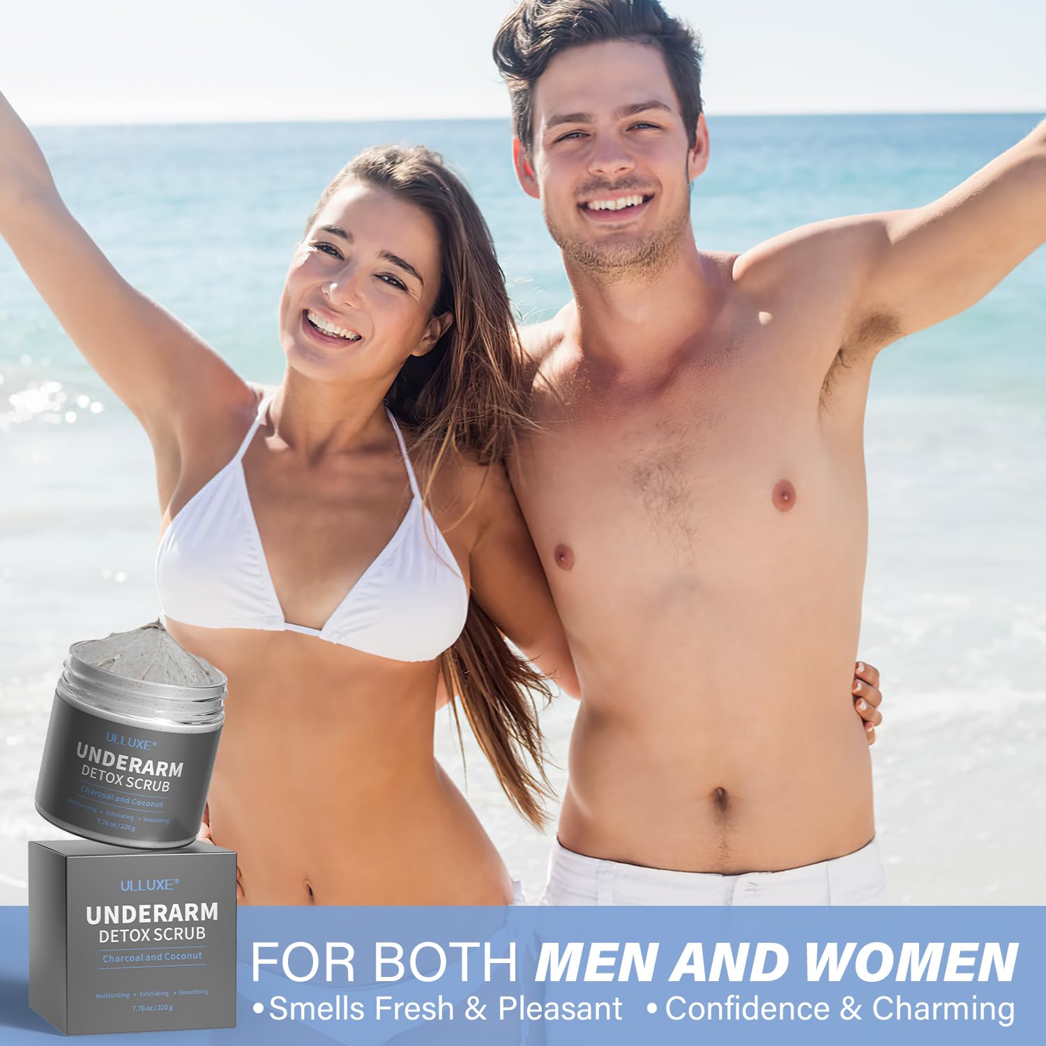 - 【Bye-Bye Stinky Underarms】 Our Charcoal Detox Underarm Scrub is specially crafted for men and women to reduce odor and refresh effortlessly. Infused with a naturally uplifting formula, it gently exfoliates while neutralizing odors, leaving your underarms clean, smooth, and smelling fresh all day long. Stay confident, stay energized, and let your armpits breathe easy!