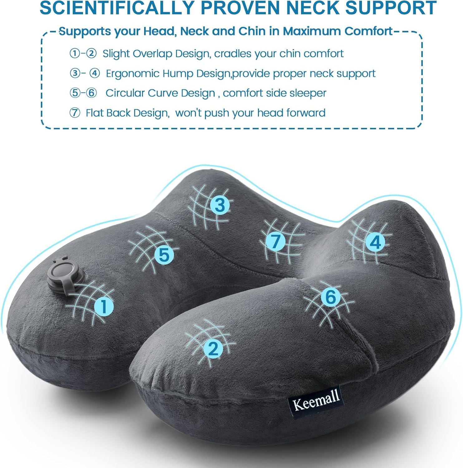 Inflatable Travel Pillows for Airplanes, Easy Blow Up Inflatable Travel Neck Pillows for Air Travel Sleeping Long Flight, Comfort Travel Air Pillows for Car Train Office Nap Camping
